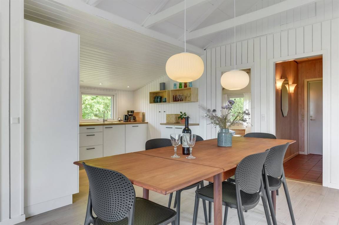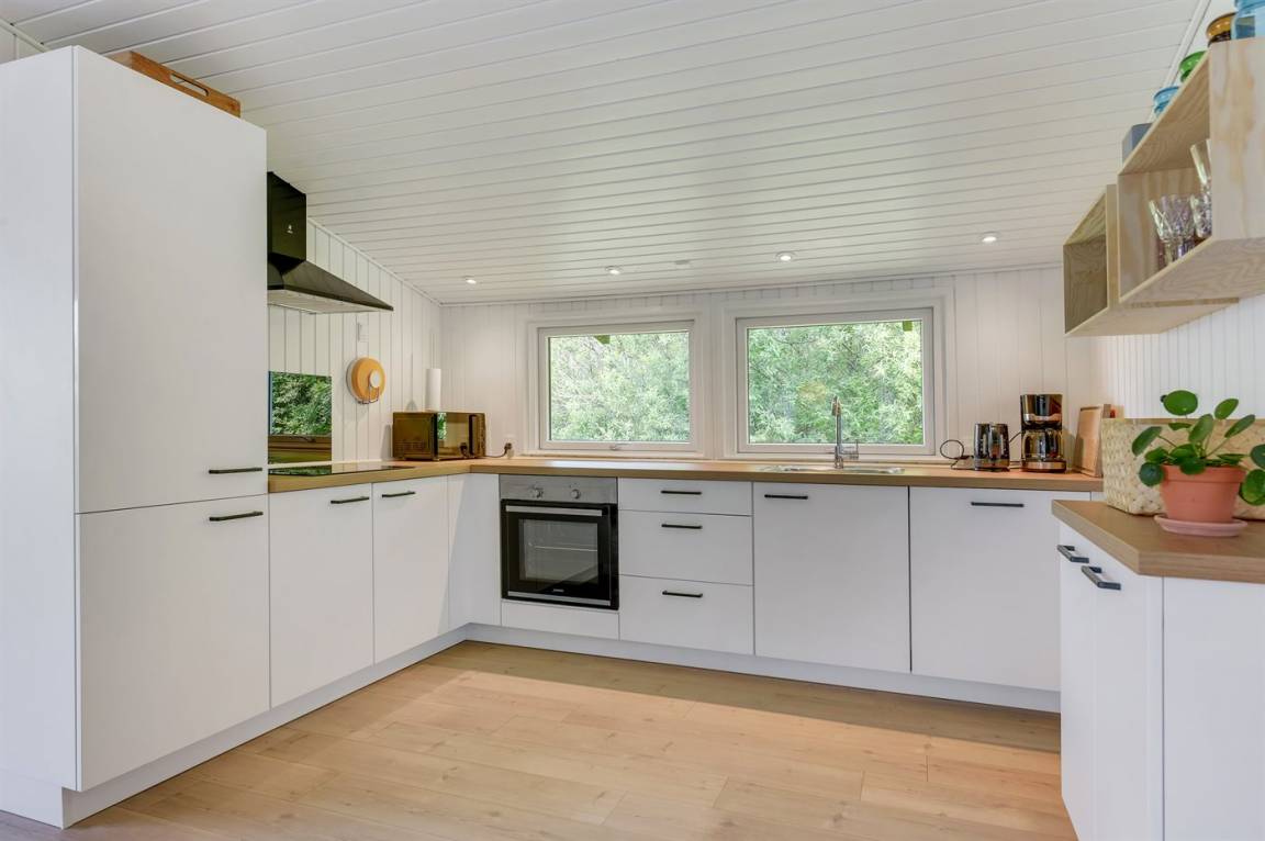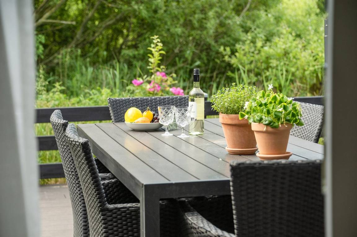 Gemütliches und gepflegtes Ferienhaus auf einem großen Naturgrundstück am Ende einer Sackgasse gelegen. Vom Haus, das dicht am Wasser liegt, haben Sie einen phantastischen Blick auf ein Naturschutzgebiet. Offene und teilweise abgeschirmte Terrasse mit Gartenmöbeln. Innen ist das Haus hell und geräumig mit hohen Decken und viel Lichteinfall.