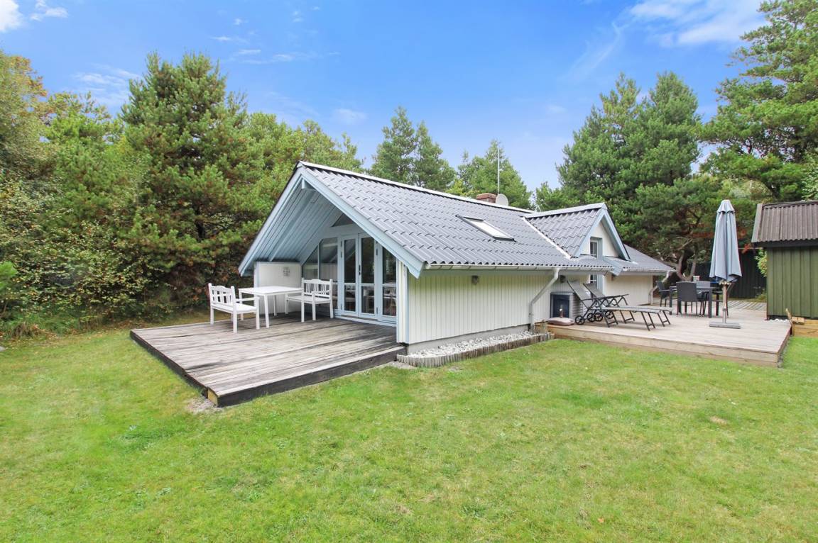 Dieses gemütliche, kleine Ferienhaus liegt zurückgezogen auf einem großen Grundstück mit Bäumen und verschiedener Bepflanzung. Das Haus liegt in naturschöner Umgebung mit einem reichen Vogelleben und mit der Möglichkeit die Rehe am Futterhäuschen zu betrachten, das sich nicht weit vom Haus entfernt befindet. Es stehen schöne und ungestörte Terrassen zur Verfügung und nicht weit vom Haus entfernt liegt der kinderfreundliche Badestrand, Restaurants, eine Golfanlage und der Wald, der zu lange Spaziergänge einlädt.