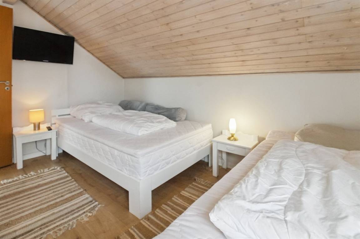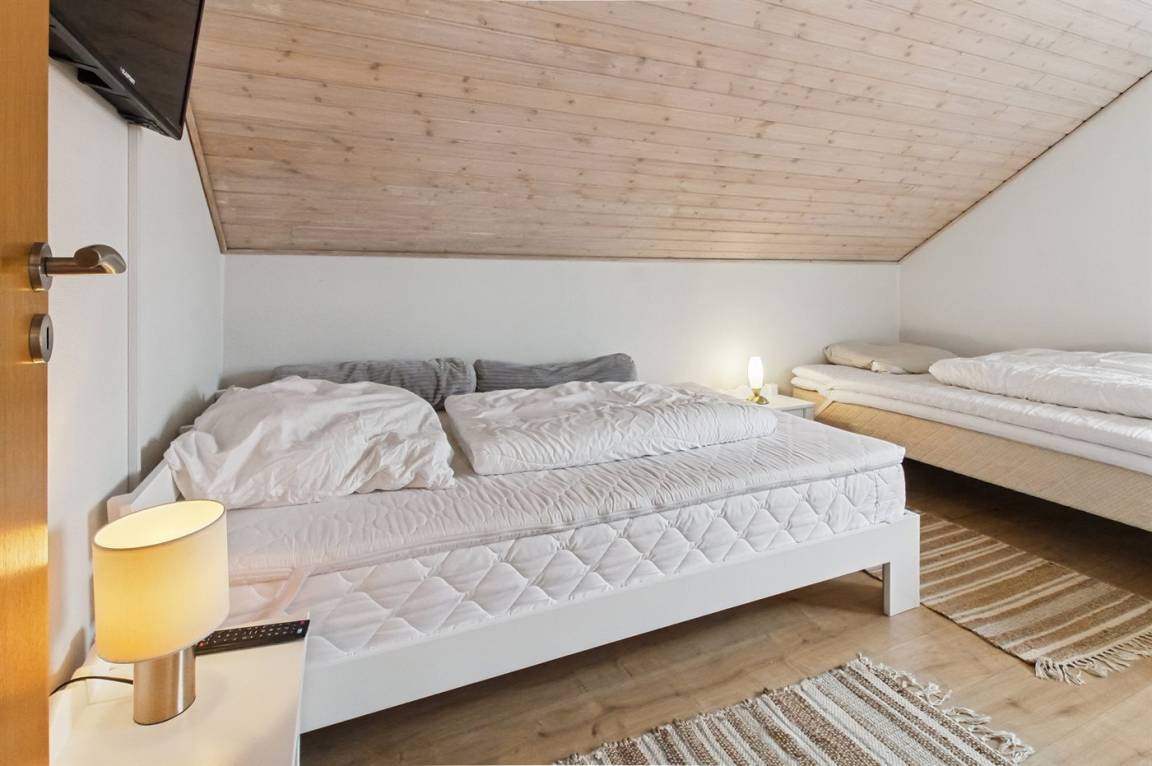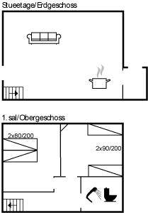 Badezimmer mit Dusche und Waschmaschine. Die Küche ist u.a. mit Herd mit Ceran-Feld, Warmluftofen und Geschirrspüler ausgerüstet. Das Wohnzimmer ist mit TV und Gemeinschaftsantenne samt Stereoanlage mit CD-Spieler ausgestattet. Ferner kostenlose, kabellose Internetverbindung vorhanden (Computer ist mitzubringen). Die Schlafplätze des Hauses verteilen sich auf 2 Zimmer im Obergeschoss; 1 Zimmer mit Doppelbett und 1 Zimmer mit 2 Einzelbetten. Fernheizung.