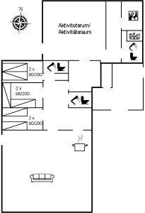 Dieses schöne, hochisolierte und allergiegerechte Ferienhaus aus Stein, 1965 gebaut und 2011 renoviert, liegt in Havneby auf einem Naturgrundstück mit Rasen und Platz zum Spielen - dicht am Hafen, dem neuen Golfplatz und dem Labyrinthpark. Zum Haus gehört eine offene Terrasse mit Gartenmöbeln und Weber-Grill (ø 57 cm). Die gut ausgestattete Küche enthält u. a. Geschirrspüler, Mikrowelle, Umluftofen und Herd mit Ceran-Feld. Das Wohnzimmer ist mit Kaminofen, DVD-Spieler, Flatscreen-TV mit digitalem Satellitenanschluss und Stereoanlage mit CD-Spieler ausgestattet. Großer Aktivitätsraum mit Trimmrad, Tischfußball, Tischtennistisch und Dartscheibe mit Pfeilen. Die Schlafplätze verteilen sich auf 1 Zimmer mit Doppelbett und 2 Zimmer mit je 2 Einzelbetten. Es stehen 3 Badezimmer zu Ihrer Verfügung, alle mit Fußbodenheizung und Duschnische. Separate Sauna. An weiterer Ausstattung können kostenlose, kabellose Internetverbindung (Computer ist mitzubringen), Waschmaschine und Wäschetrockner erwähnt werden. Für die jüngsten Feriengäste gibt es Kinderbett und Kinderhochstuhl sowie Sandkasten und Schaukel auf dem Grundstück. Übrigens: Es ist ein Ladestecker für Elektroautos installiert. Das Haus wird mit Öl beheizt. Ein geräumiges Ferienhaus mit einer guten Lage.