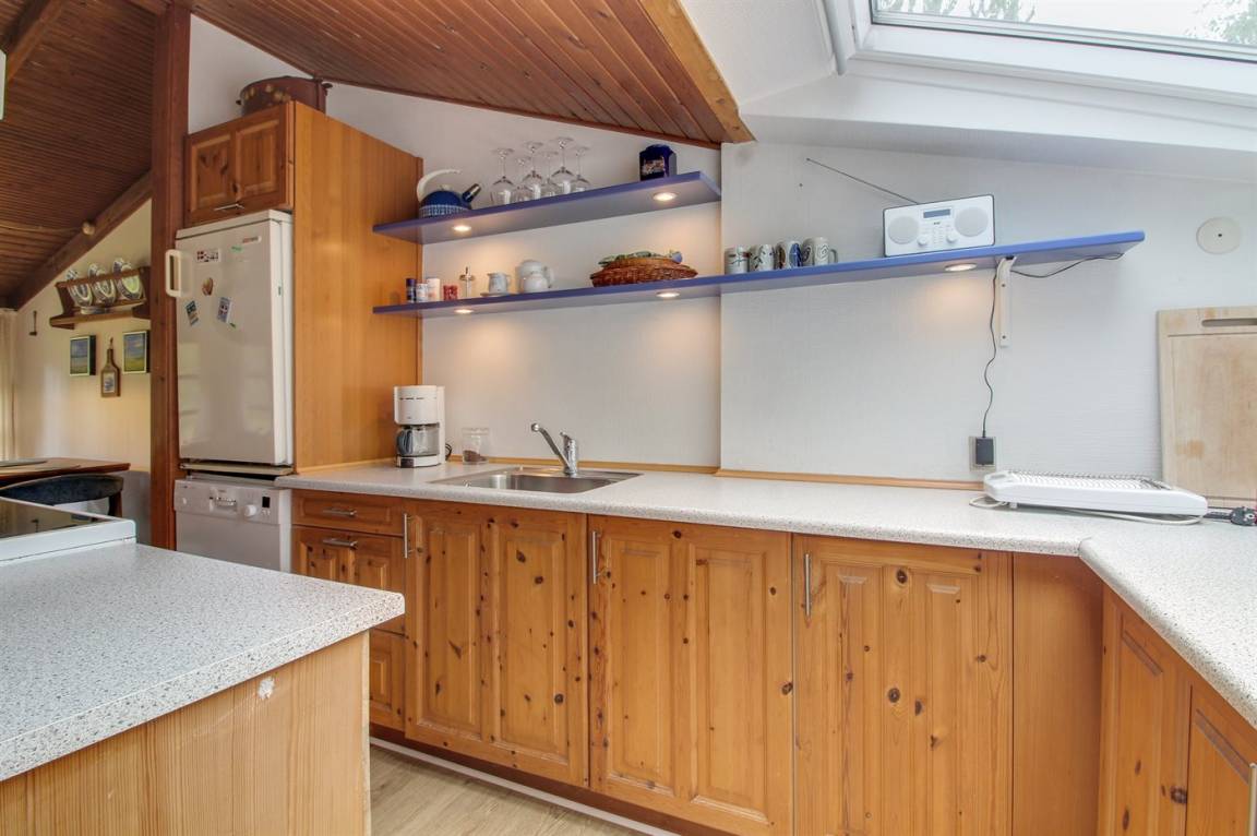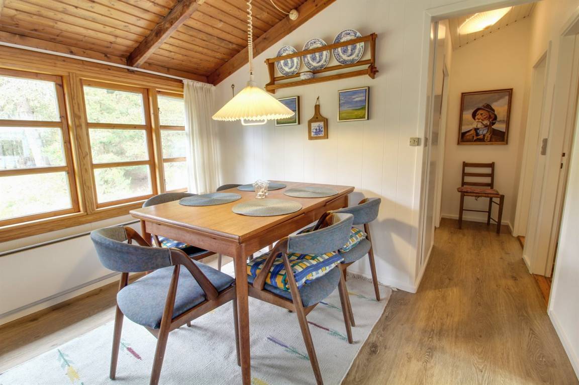 Dieses schöne Ferienhaus aus Holz, 1963 gebaut und 1997 modernisiert, liegt dicht am Wattenmeer auf einem großen Naturgrundstück am Ende einer Sackgasse. Zum Haus gehören sowohl offene als auch überdachte Terrasse mit Gartenmöbeln. Badezimmer mit Dusche. Die schöne, helle Küche ist mit u. a. Tiefkühlgerät und Geschirrspüler ausgestattet. Im Wohnzimmer mit Ausgang zur Terrasse finden Sie Kamin, TV mit digitalem Satellitenanschluss und Stereoanlage mit CD-Spieler. Die Schlafplätze verteilen sich auf 2 Zimmer; 1 mit Doppelbett und 1 mit 2 Einzelbetten. Ferner Waschmaschine vorh. Unternehmen Sie einen Spaziergang in das große, mit Heidekraut bewachsene Gebiet und beobachten Sie das reiche Vogelleben am Wattenmeer.