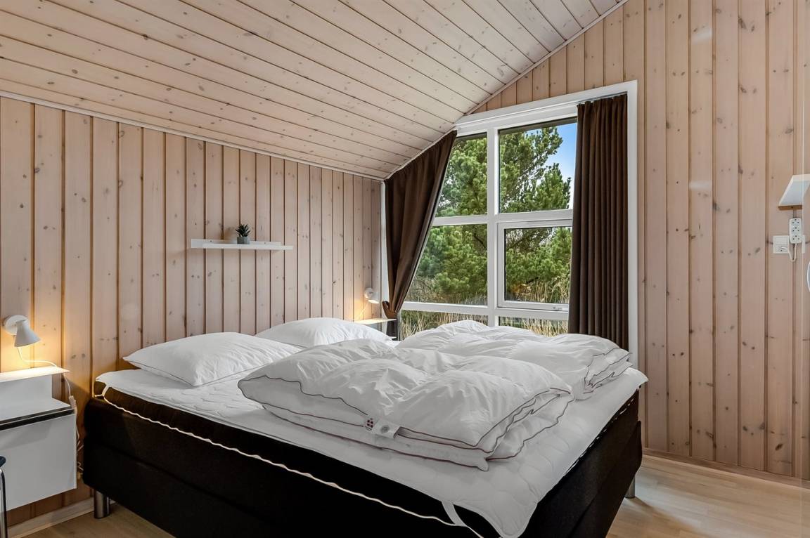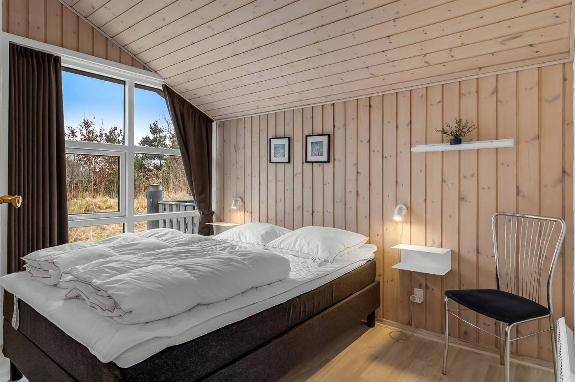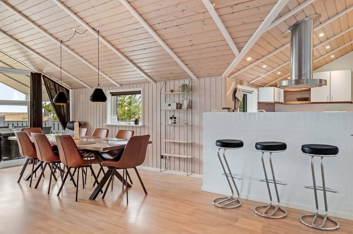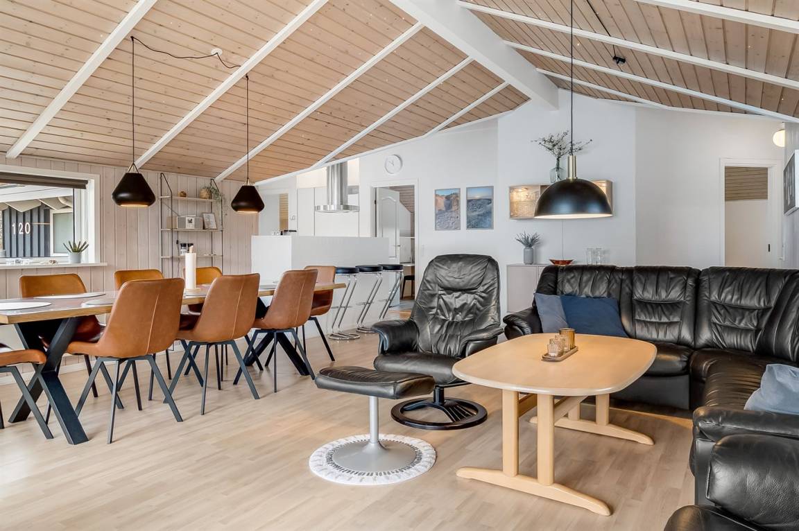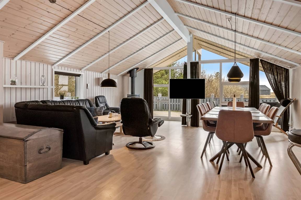 Dieses Luxusferienhaus aus Holz liegt auf einem großen Naturgrundstück mit ungehinderter Sicht über das Heidegebiet sowie die mit Gras bewachsenen Dünen. Der Strand, wo sich sich u.a. Urlauber beim Drachen steigen lassen Vergnügen, ist im Hintergrund zu ahnen. Zum Haus gehört eine abgeschirmte teils überdachte, nach Süden und Westen gerichtete Terrasse mit Gartenmöbeln. Das Haus ist geschmackvoll eingerichtet und aufgrund der guten Aufteilung der Zimmer ist es für sowohl 1 als 2 Familien geeignet.