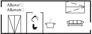 Diese, 30 m² große Wohnung ist für 2 Personen eingerichtet - 2 der Schlafplätze eignen sich jedoch nur für größere Kinder (4-11 Jahre). Es gibt Badezimmer mit Dusche, Küche mit u. a. Mikrowelle und 2 Elektro Kochplatten, Wohnzimmer mit Radio, TV und Gemeinschaftsantenne. Ferner kostenlose, kabellose Internetverbindung vorhanden (Computer ist mitzubringen). Die Schlafplätze verteilen sich auf ein Alkoven mit Doppelbett und 2 Schlafplätze auf einer Doppelschlafcouch im Wohnzimmer.