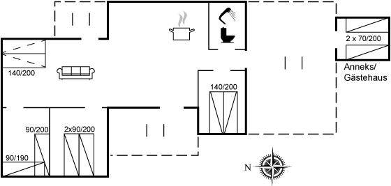 DraußenDie Ferienunterkunft liegt auf einem 880 m² großen Naturgrundstück. Die Entfernung zum Meer beträgt 450 m.Die Entfernung zum Wattenmeer beträgt 3800 m. Die nächste Einkaufsmöglichkeit liegt 700 m entfernt. Es steht ein 60 m² Terrassenareal zur Verfügung. Parkplatz auf dem Grundstück.