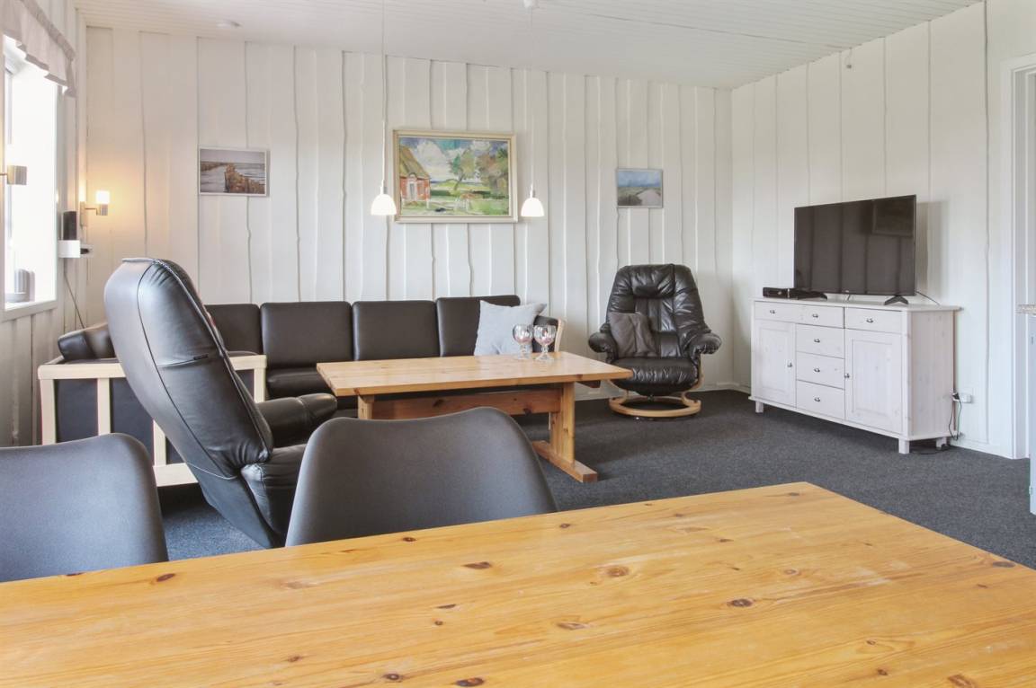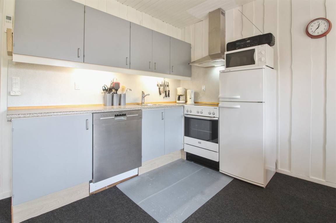 Zur Wohnung gehört eine geschützte, teilweise überdachte Terrasse mit Gartenmöbeln und Grill. Vom Wohnzimmer und der Terrasse haben Sie Meeresblick, und können u. a. die Fähre nach Sylt beobachten. Innen sind die Wände mit Holz verkleidet. Im Badezimmer ist eine Duschnische vorhanden. Die Küche ist u. a. mit einer Mikrowelle, einem Geschirrspüler und einer Kühl-/Gefrierkombination ausgestattet. Im Wohnzimmer, mit Zugang zur Terrasse, finden Sie eine Stereoanlage mit CD-Spieler, DVD-Spieler und 40" Fernseher. X-Box mit zugehörigen Spielen. Ferner ist kostenlose, kabellose Internetverbindung vorhanden (Computer ist mitzubringen). Die Schlafplätze verteilen sich auf 2 Zimmer; 1 mit Doppelbett und 1 mit Etagenbett und Einzelbett.