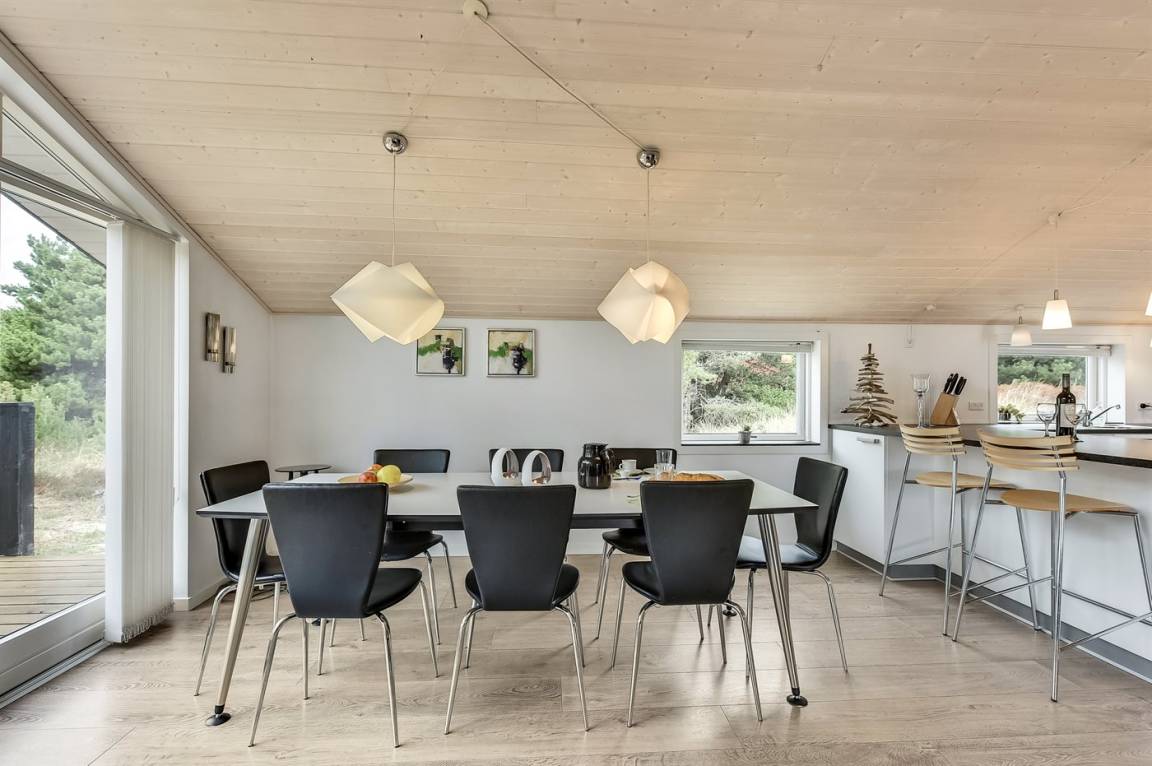 Das Ferienhaus eignet sich für 8 Personen sowie 1 Kleinkind bis zu 3 Jahren. Die Ferienunterkunft hat eine Wohnfläche von 150 m² und wurde 2010 gebaut. Es ist erlaubt 2 Haustiere mitzubringen. Die Ferienunterkunft ist mit 2 energiefreundlichen Luft-Luft-Wärmepumpen ausgestattet. Die Ferienunterkunft ist mit Waschmaschine ausgestattet. Wäschetrockner. Tiefkühlmöglichkeit mit 70 Liter Nutzinhalt. Es gibt außerdem einen Kaminofen. Für die jüngsten Feriengäste ist 1 Kinderhochstuhl vorhanden.