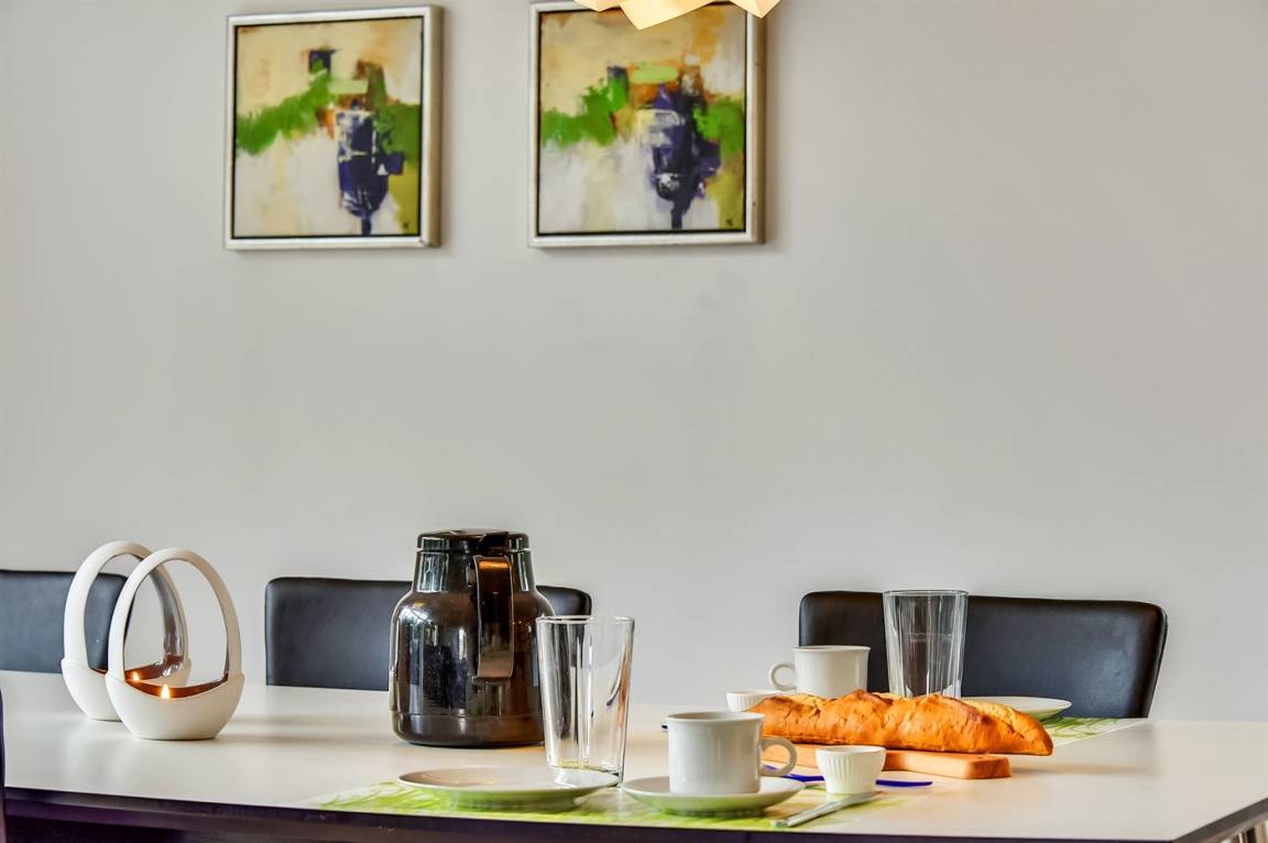 KücheDie Küche ist mit Kühlschrank ausgestattet. Außerdem gibt es 4 Keramik-Kochfelder, Umluftofen, Mikrowelle sowie Geschirrspüler.