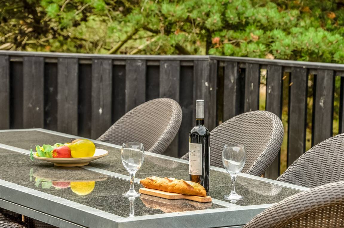 Zum Haus gehört u. a. eine geschlossene Terrasse, dies ist besonders für diejenigen ein Vorteil, die kleine Kinder haben oder den Familienhund mit in den Urlaub nehmen.