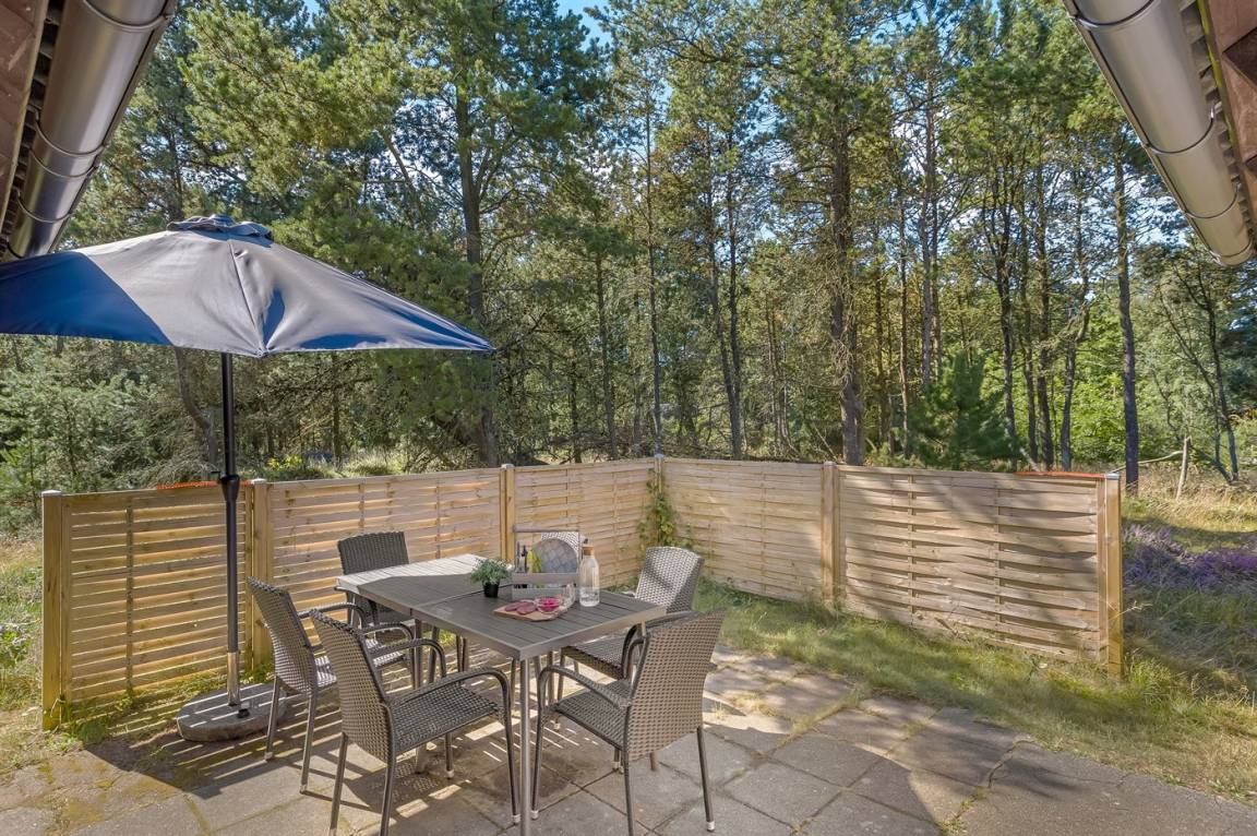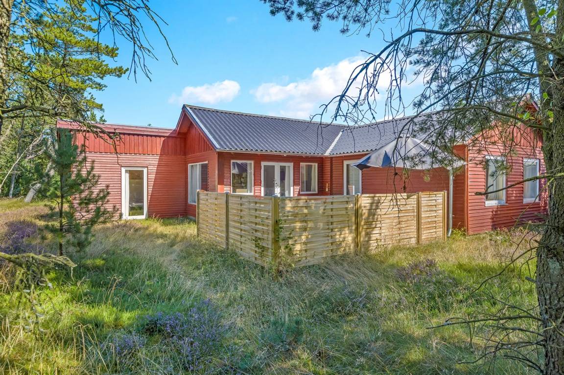 Schönes Ferienhaus nur 800 m vom Meer entfernt auf einem großen Naturgrundstück mit Heide. Das Grundstück ist von Bäumen umgeben und daher ist es ungestört.