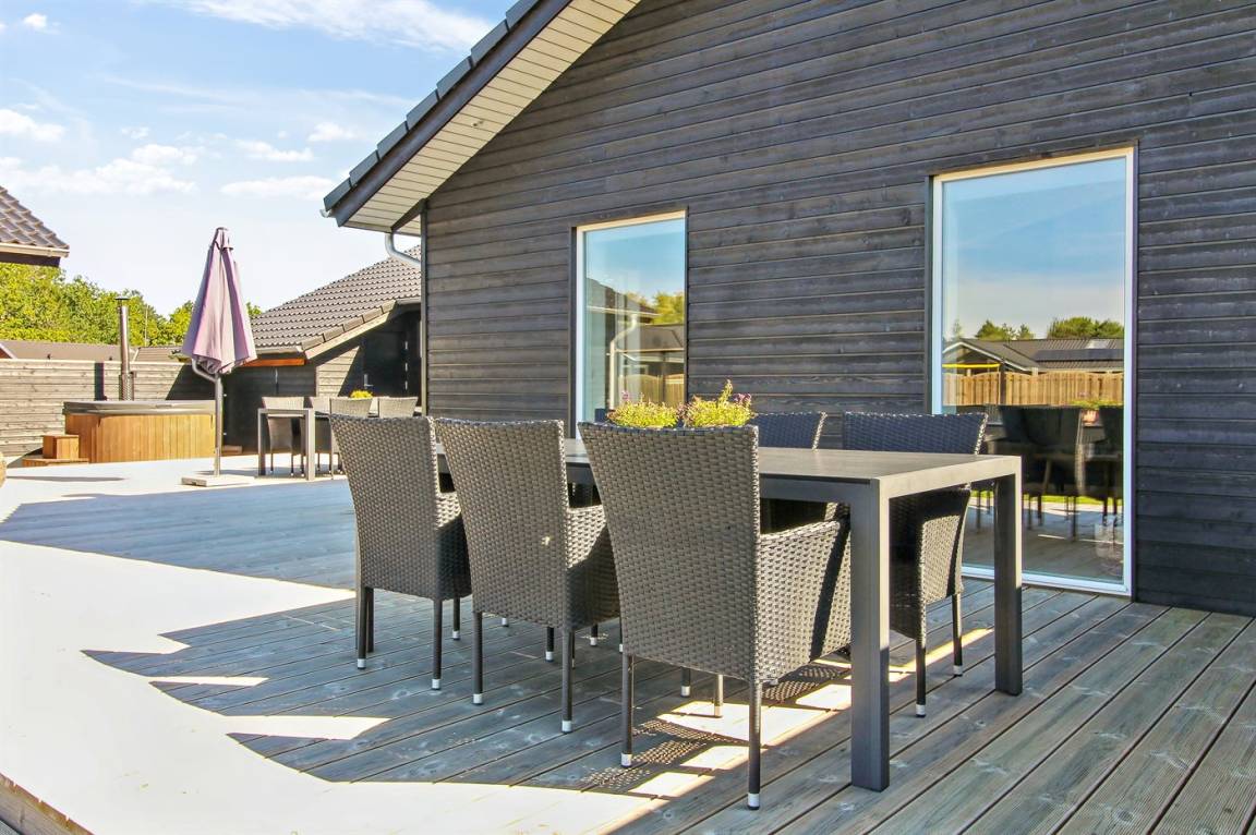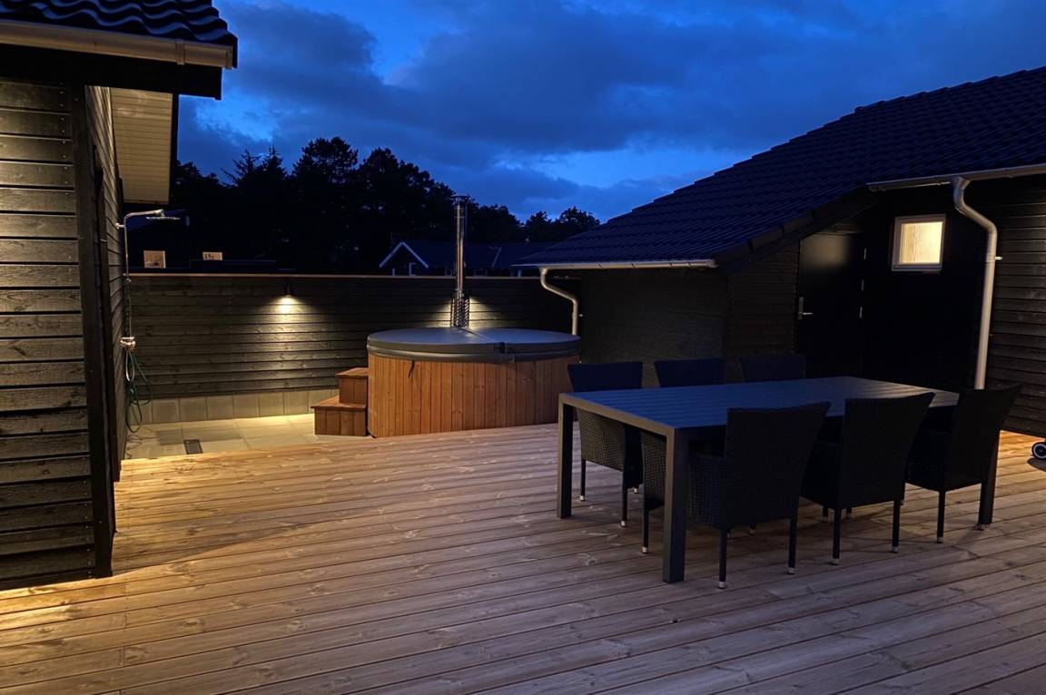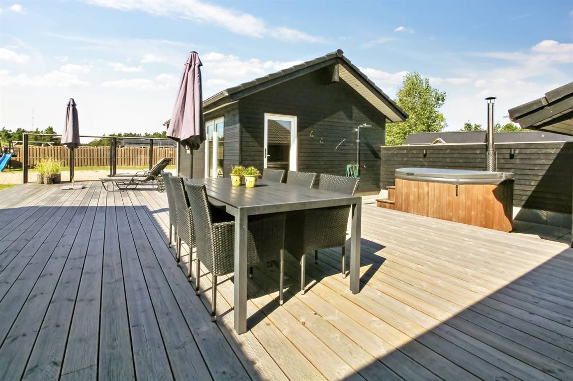 Ein schönes Ferienhaus für10 Personen und mit 5 guten Schlafzimmern sowie einem zusätzlichen Raum, wo z. B. Billard, Tischtennis und Arcade-Spiele zur Verfügung stehen. Vom schönen Wohnzimmer aus hat man direkten Zugang zur Terrasse, wo es viel Platz fürs gemütliche Beisammensein gibt und wo ein Hot Tub für pure Entspannung zur Verfügung steht.