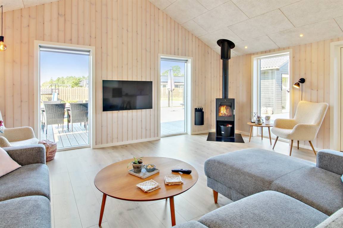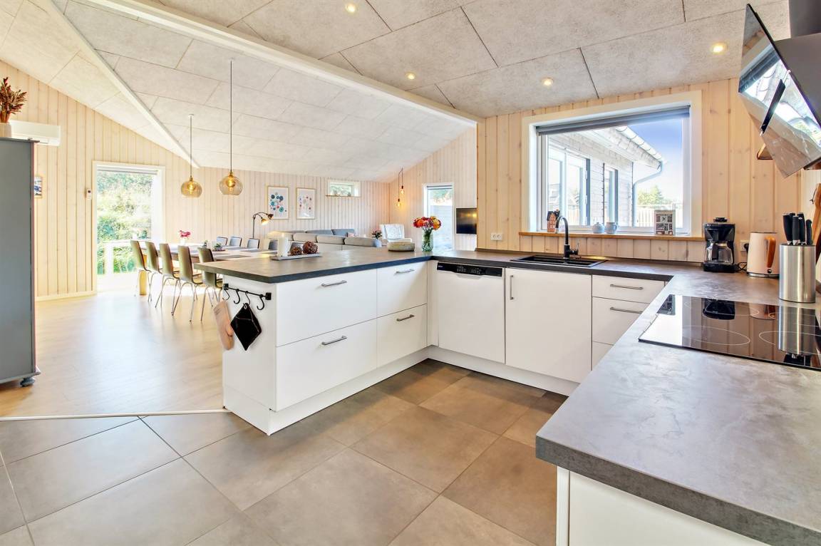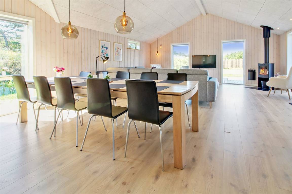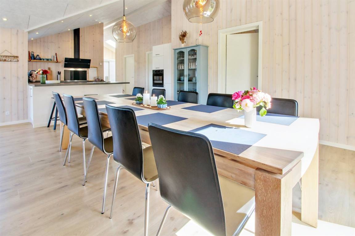 Ein schönes Ferienhaus für10 Personen und mit 5 guten Schlafzimmern sowie einem zusätzlichen Raum, wo z. B. Billard, Tischtennis und Arcade-Spiele zur Verfügung stehen. Vom schönen Wohnzimmer aus hat man direkten Zugang zur Terrasse, wo es viel Platz fürs gemütliche Beisammensein gibt und wo ein Hot Tub für pure Entspannung zur Verfügung steht.