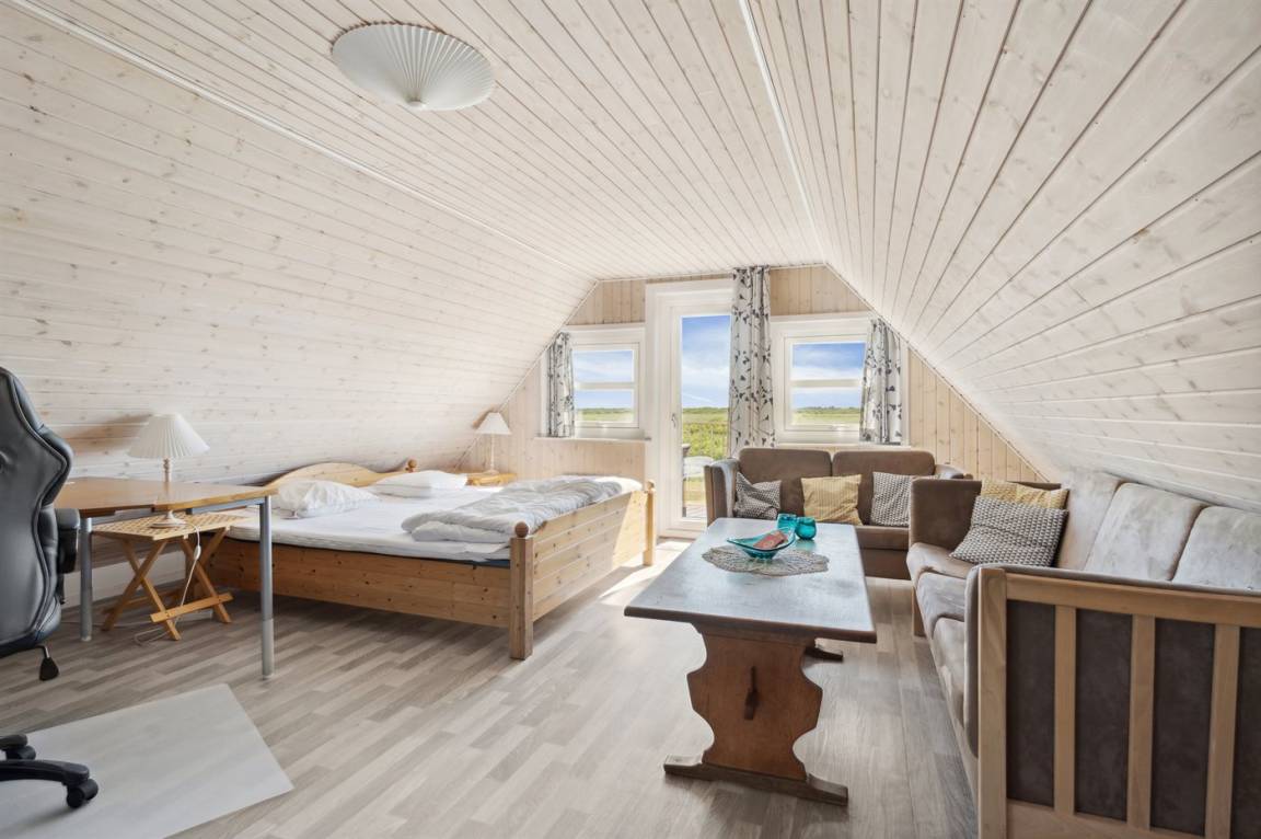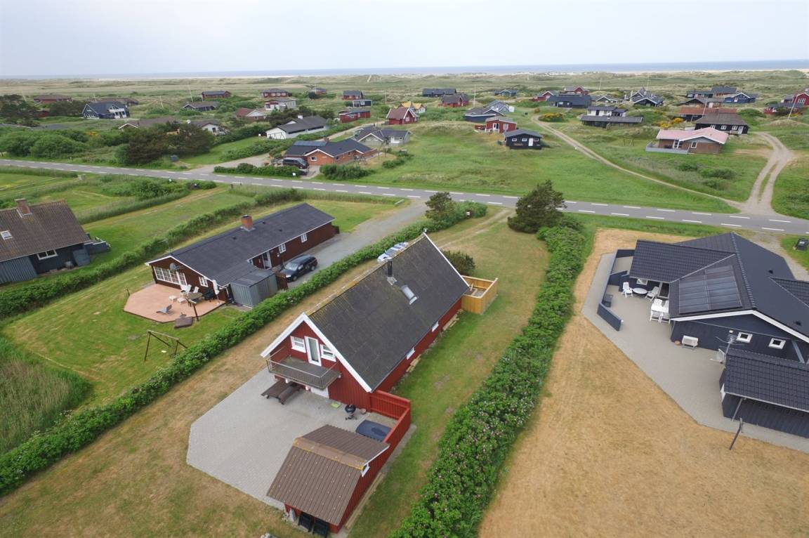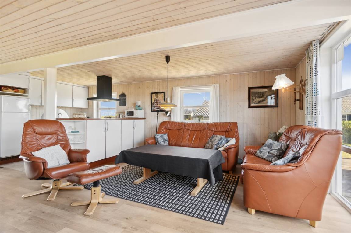 Dieses schöne Ferienhaus liegt hoch auf einem Naturgrundstück mit Rasen dicht an der Nordsee. Vom Obergeschoss aus hat man eine schöne Aussicht über Lakolk See und das offene Gebiet.