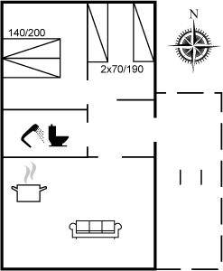 SchlafverhältnisseDie Schlafplätze verteilen sich auf 2 Schlafräume. 2 Schlafplätze in einem Doppelbett. 2 Schlafplätze in Einzelbetten.