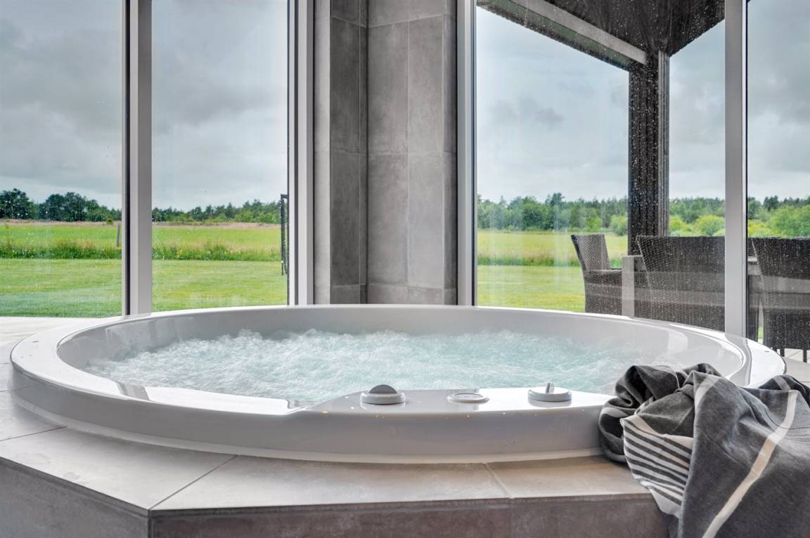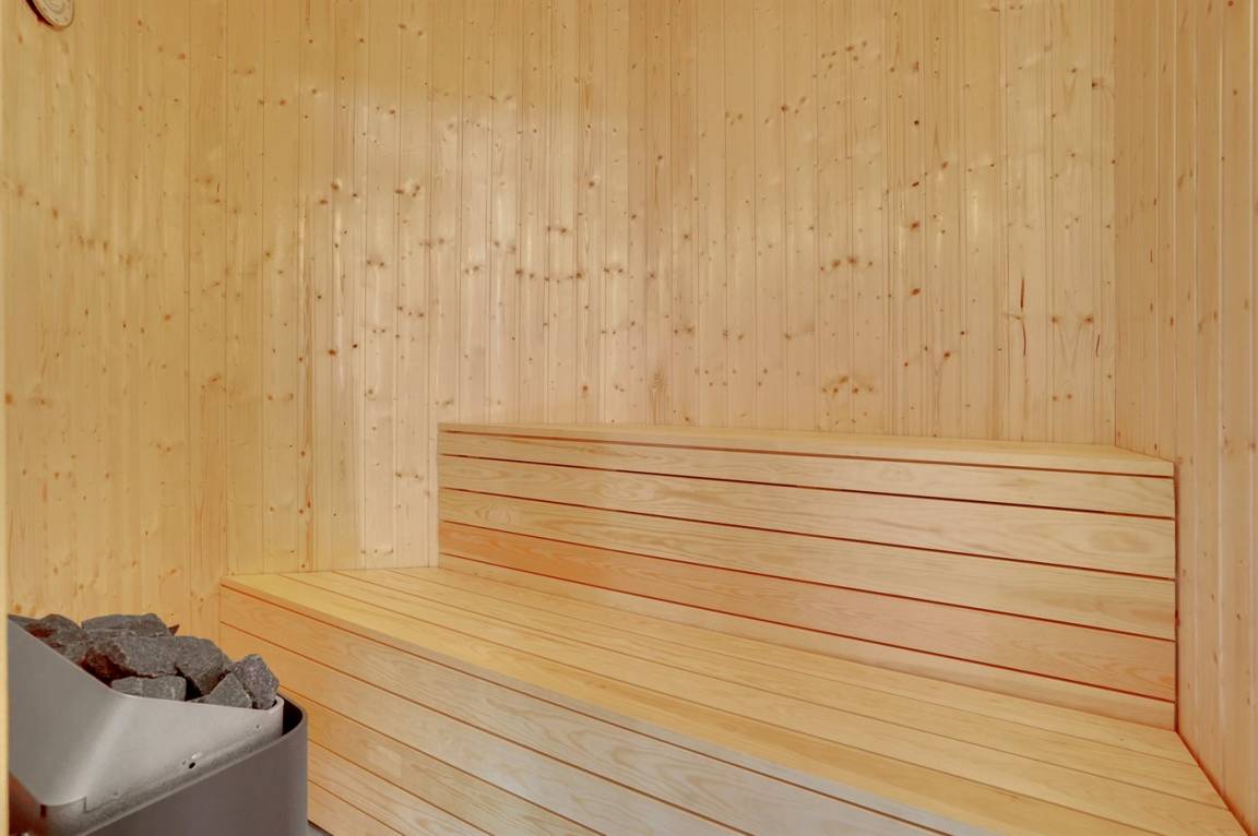 Neben dem Pool befindet sich ein toller Whirlpool für 6 Personen, der bis auf 40 Grad aufgeheizt werden kann. Hier können Sie sich entspannen, während die Kinder direkt nebenan im Pool spielen. Zu guter Letzt steht auch eine Sauna für fünf Personen zur Verfügung.