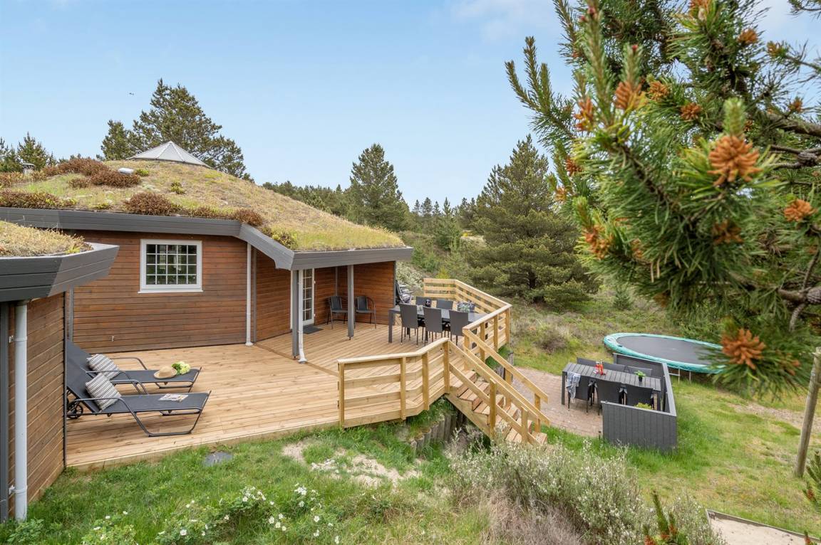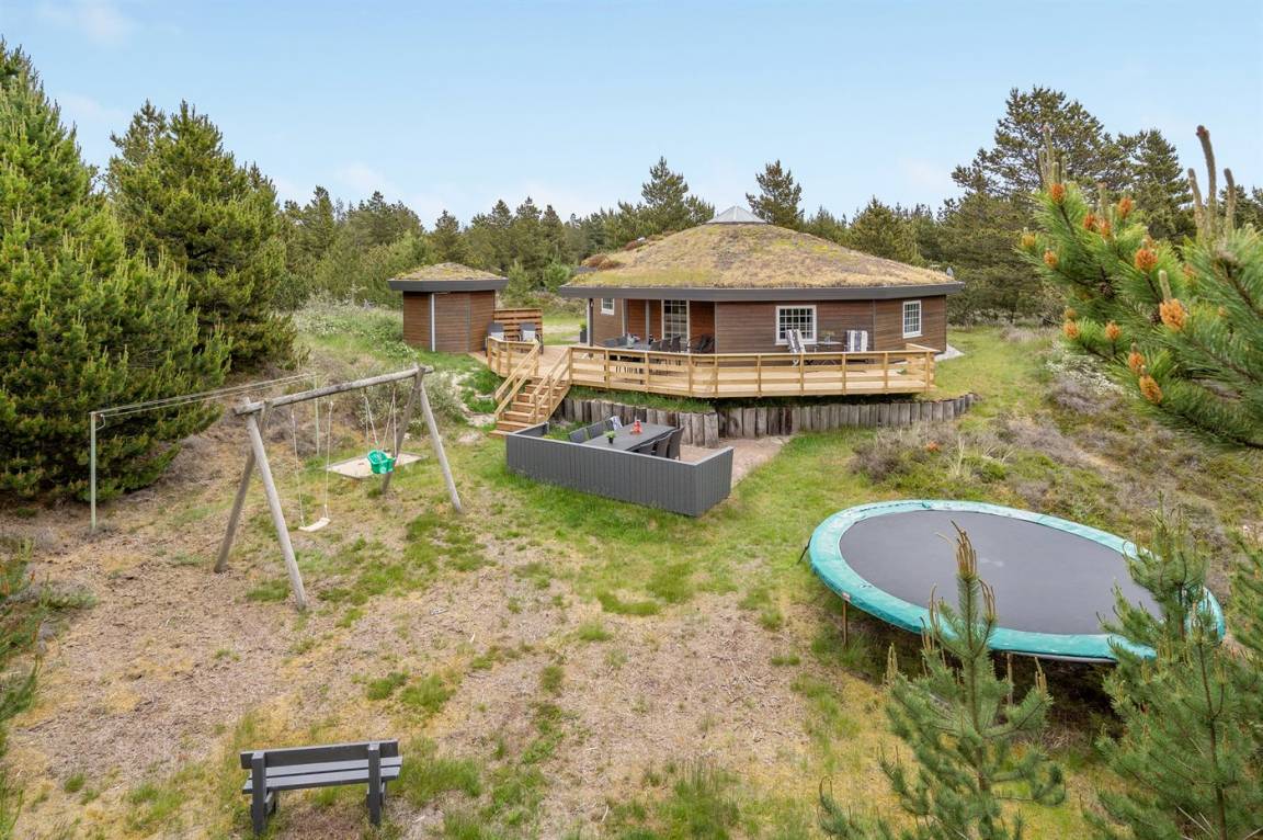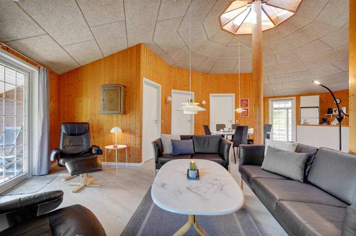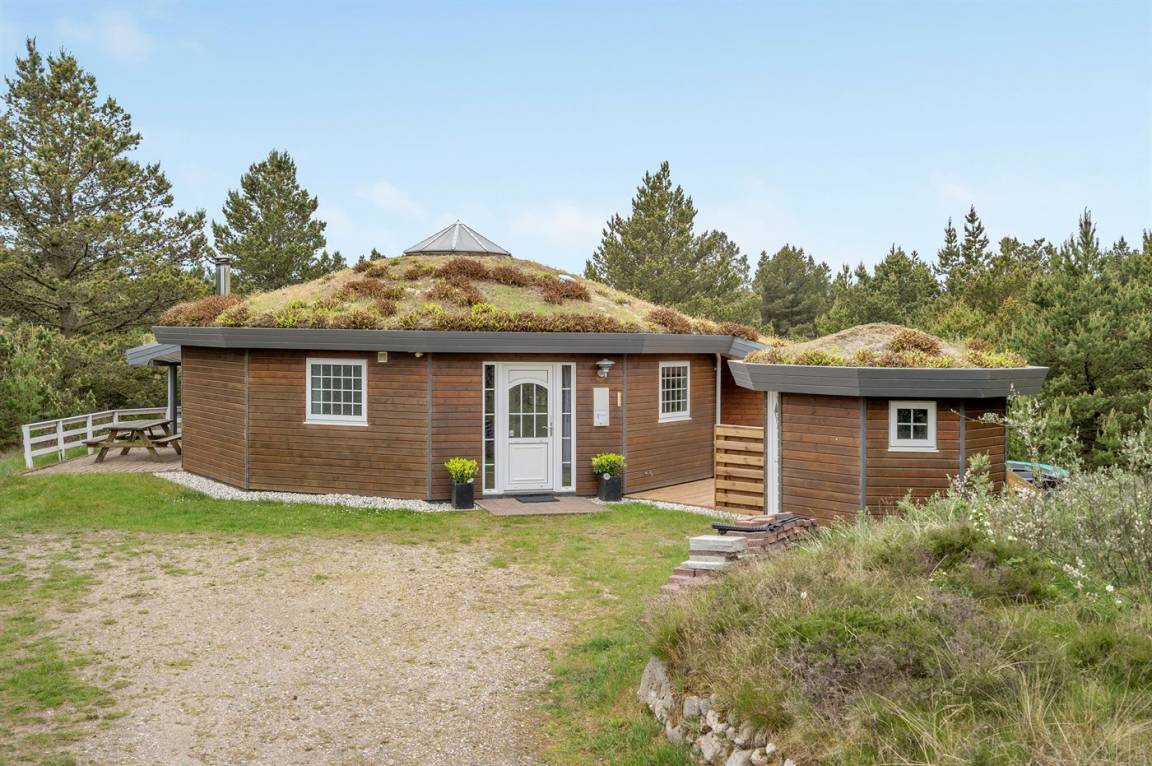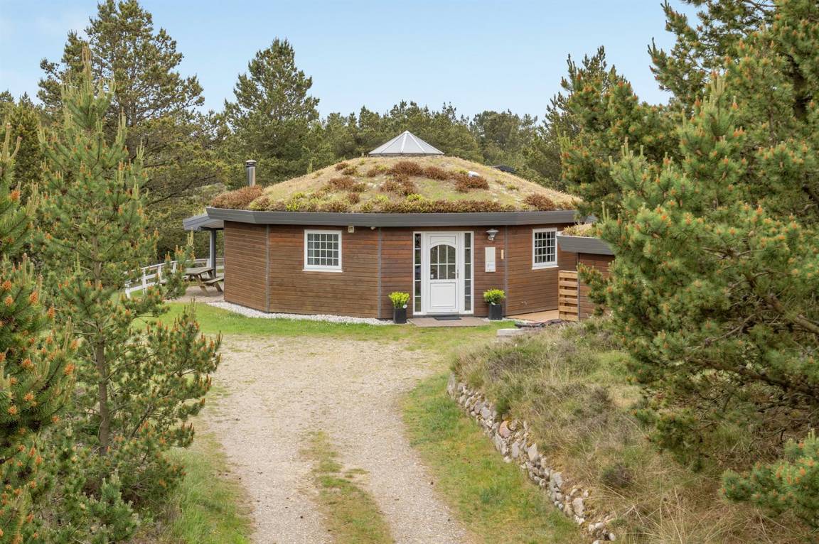 Interessantes 10-eckiges Ferienhaus hoch auf einem großen Naturgrundstück mit einer schönen Aussicht über die Landschaft gelegen.