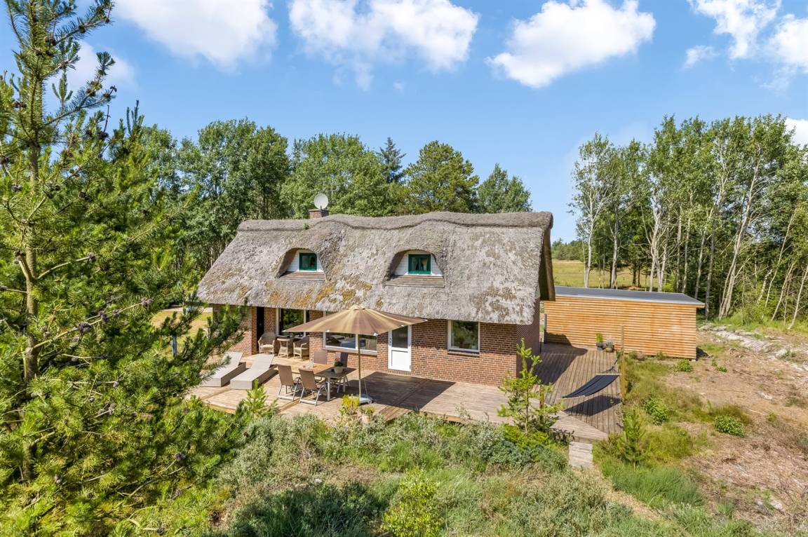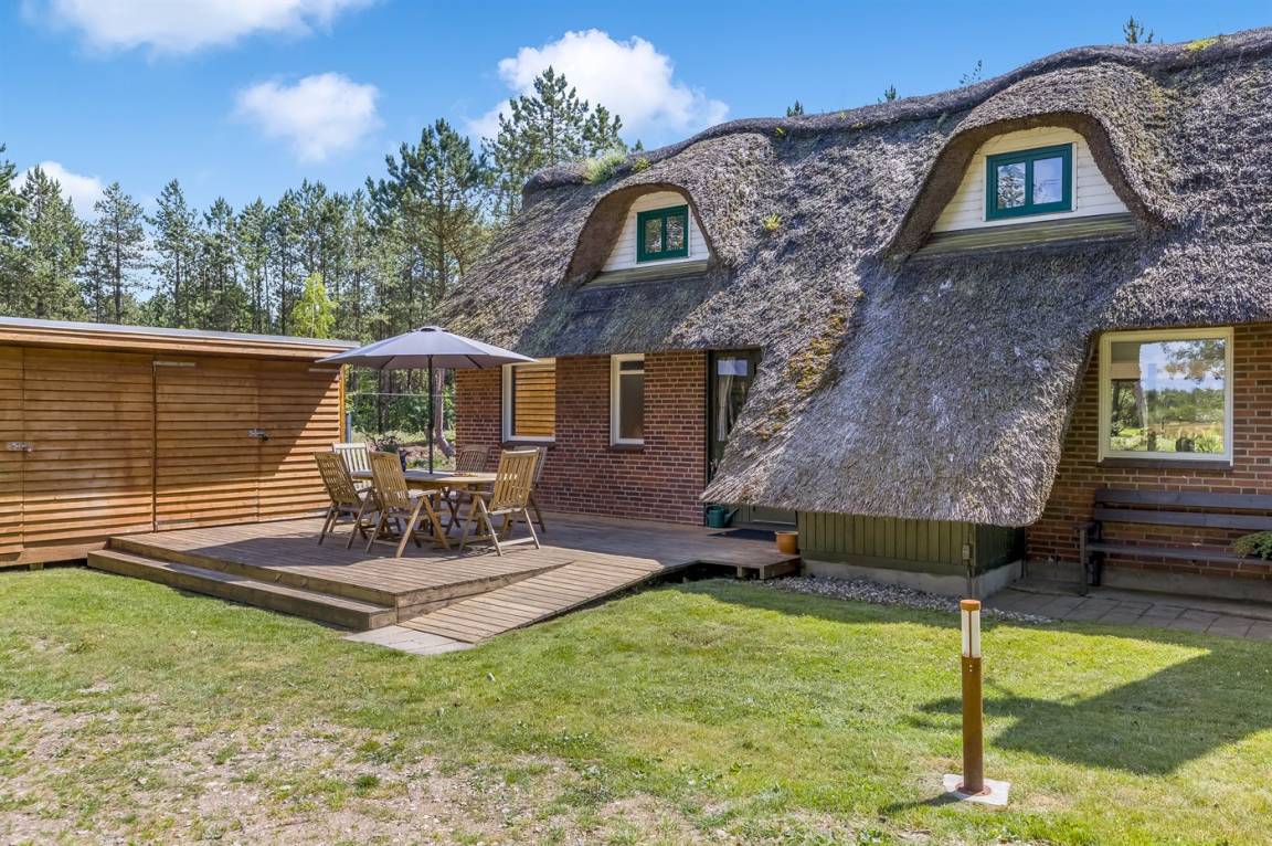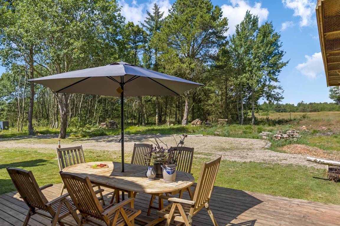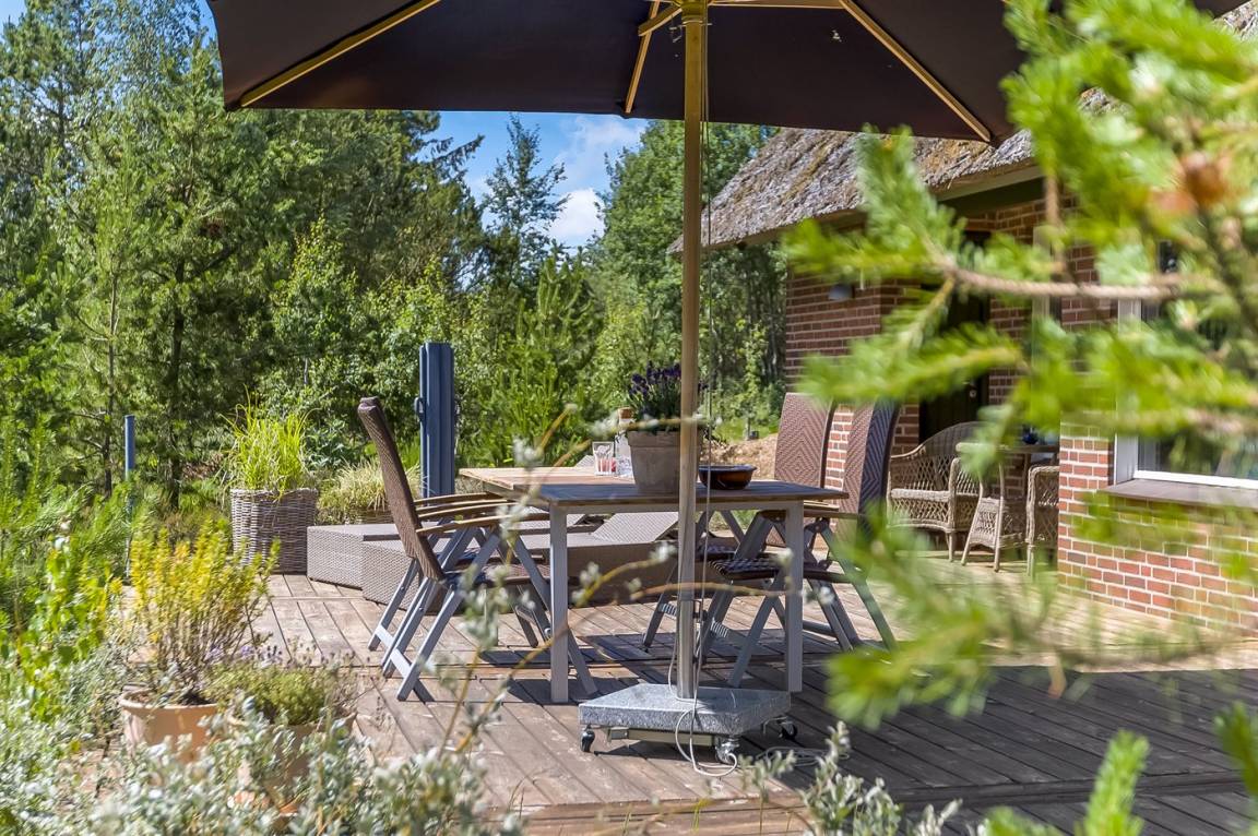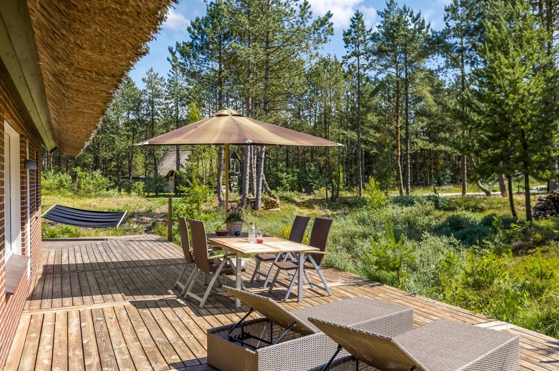 Auf einem großen und ruhigen Grundstück findest du dieses Haus mit der schönsten großen Terrasse. Hier gibt es Platz für eine große Familie oder zwei kleinere Familien mit Hunden.