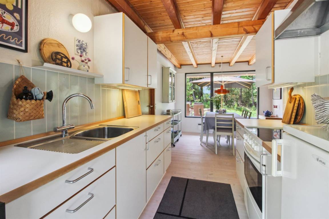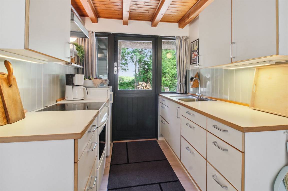 KücheDie Küche ist mit Kühlschrank ausgestattet. Im Schuppen gibt es einen zusätzlichen Kühlschrank mit Gefrierfach. Außerdem gibt es 4 Keramik-Kochfelder, Umluftofen.