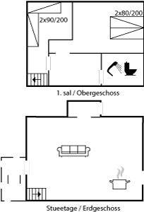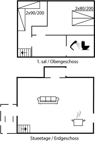SchlafverhältnisseDie Schlafplätze verteilen sich auf 2 Schlafräume. 2 Schlafplätze in einem Doppelbett. 2 Schlafplätze in Einzelbetten. Ferner steht ein Kinderbett zur Verfügung.