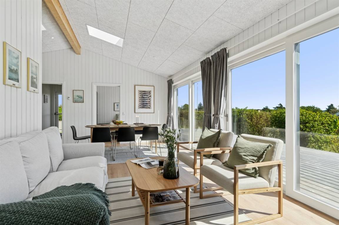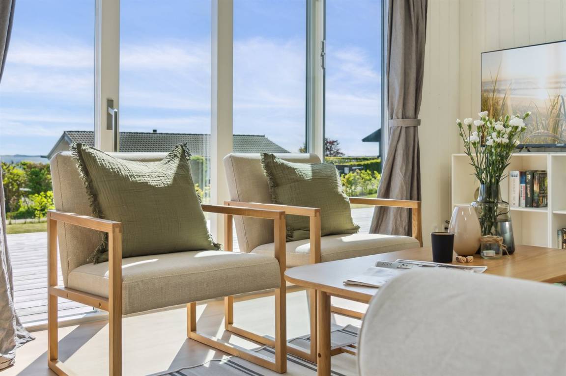 Ein exklusives, neu erbautes Ferienhaus mit Meerblick, nur einen Steinwurf vom feinen Sand und klaren Wasser des Strandes von Følle entfernt. Hier erwartet dich eine Ferienunterkunft der Spitzenklasse, in der moderne Architektur und klassische dänische Sommerhaus-Gemütlichkeit harmonisch vereint sind.