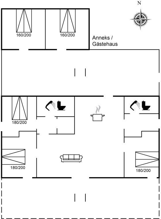 SchlafverhältnisseDie Schlafplätze verteilen sich auf 5 Schlafräume. 10 Schlafplätze in Doppelbetten. 4 von diesen Schlafplätzen befinden sich im Gästehaus.