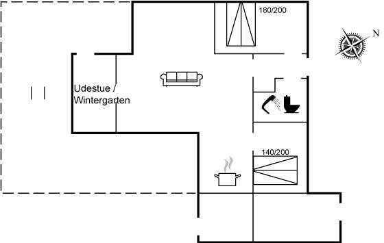 DraußenDie Ferienunterkunft liegt auf einem 770 m² großen Naturgrundstück. Die Entfernung zum Meer beträgt 250 m. Die nächste Einkaufsmöglichkeit liegt 2000 m entfernt. Es steht ein offenes Terrassenareal zur Verfügung. Zutritt zu einem Wintergarten. Parkplatz auf dem Grundstück.