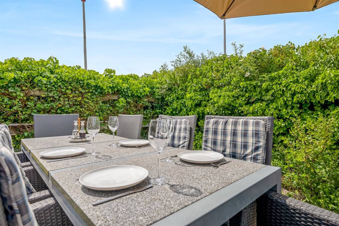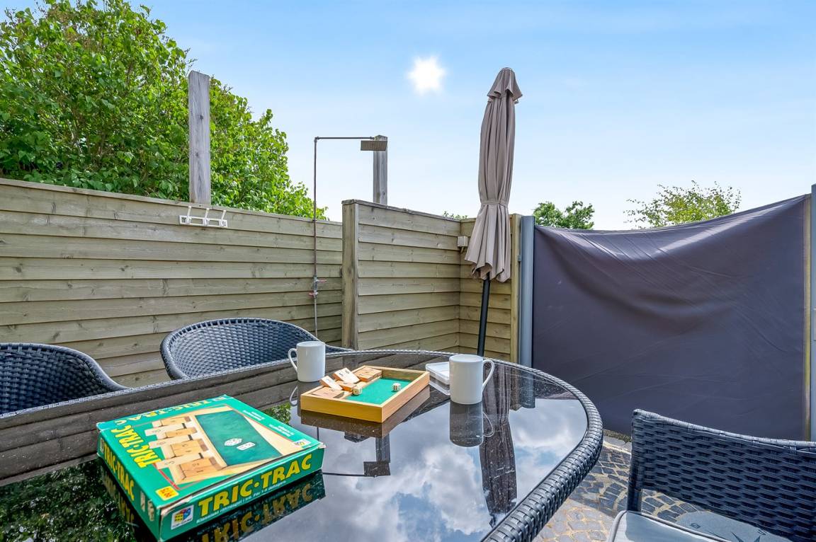 DraußenDie Ferienunterkunft liegt auf einem 400 m² großen Naturgrundstück. Die Entfernung zum Meer beträgt 50 m. Die nächste Einkaufsmöglichkeit liegt 2000 m entfernt. Es steht ein offenes Terrassenareal zur Verfügung. Außerdem gibt es überdachte Terrasse. Parkplatz auf dem Grundstück.