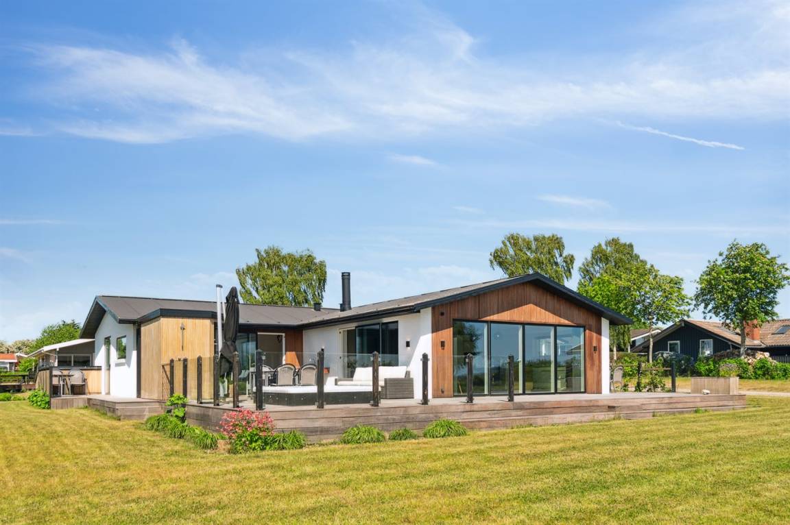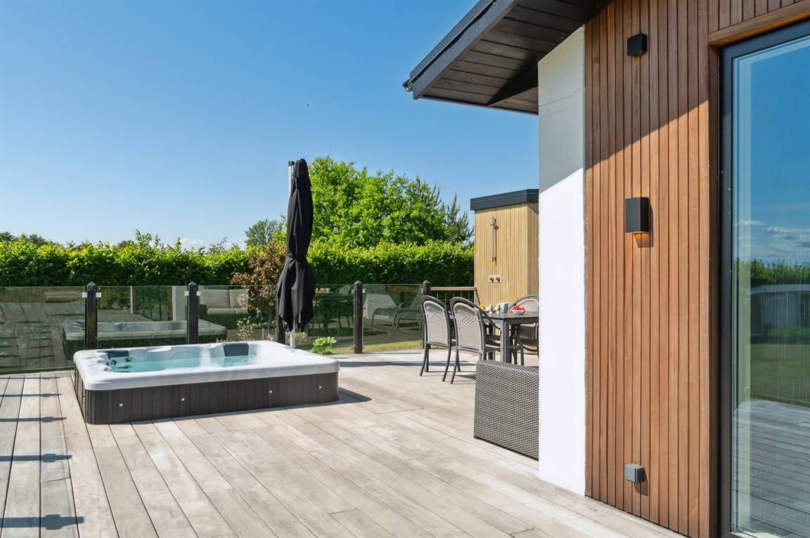 Genieße Stunden im Freien auf der geräumigen Terrasse, auf der du sonnenbaden, grillen und Mahlzeiten im Freien genießen kannst während die herrliche Aussicht als Kulisse dient. Für die ultimative Entspannung steht ein Outdoor- Whirlpool zur Verfügung - Luxus Pur. Beende das Wellnessvergnügen mit einem Besuch in der Outdoor-Sauna, wo du dich entspannen und gleichzeitig den atemberaubenden Blick auf das Wasser genießen kannst.