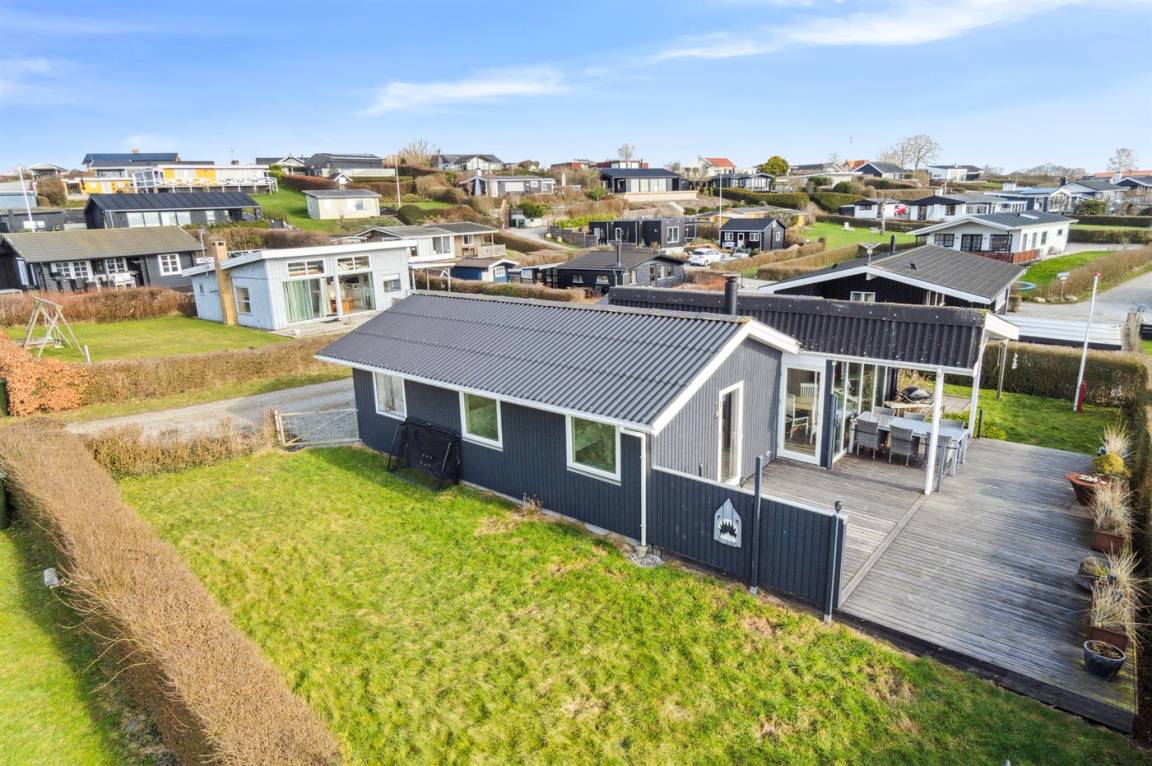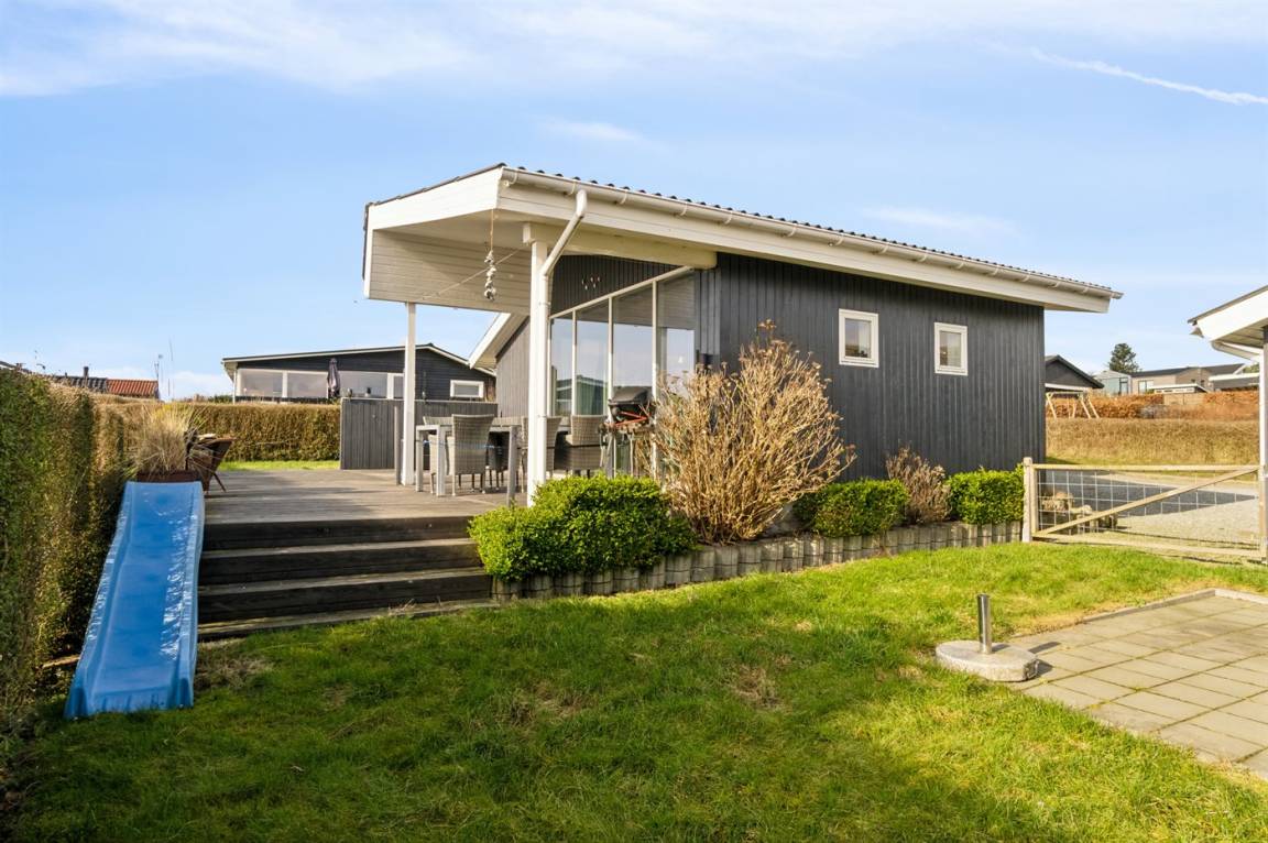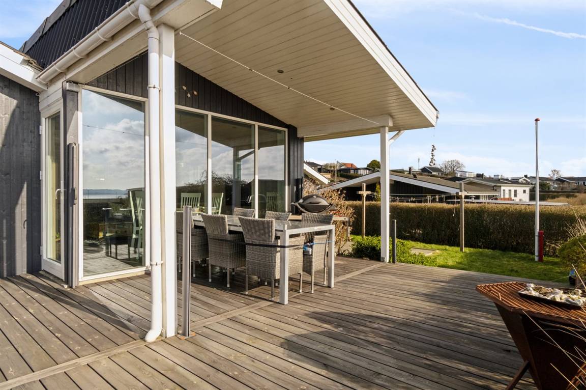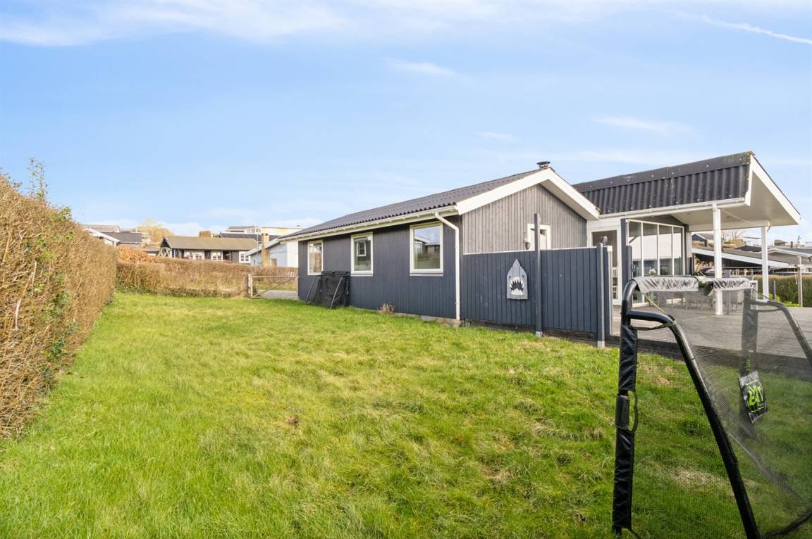 Der Garten des Hauses ist eingezäunt und die teilweise überdachte Terrasse ist ein feiner Ausgangspunkt für lange Abende im dänischen Sommer.