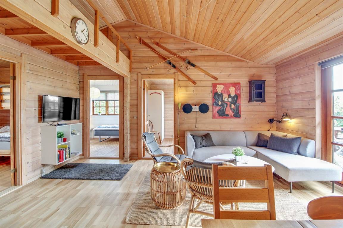 Dieses Ferienhaus, mit Aussicht über das Wasser vom Haus, liegt nah an einem kinderfreundlichen Badestrand am Rande eines Ferienhausgebiets.