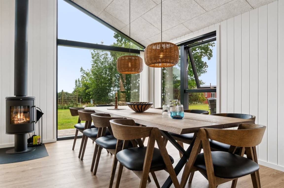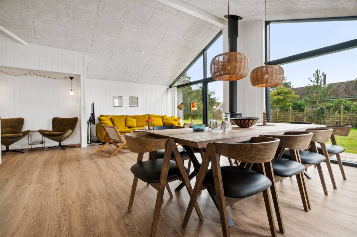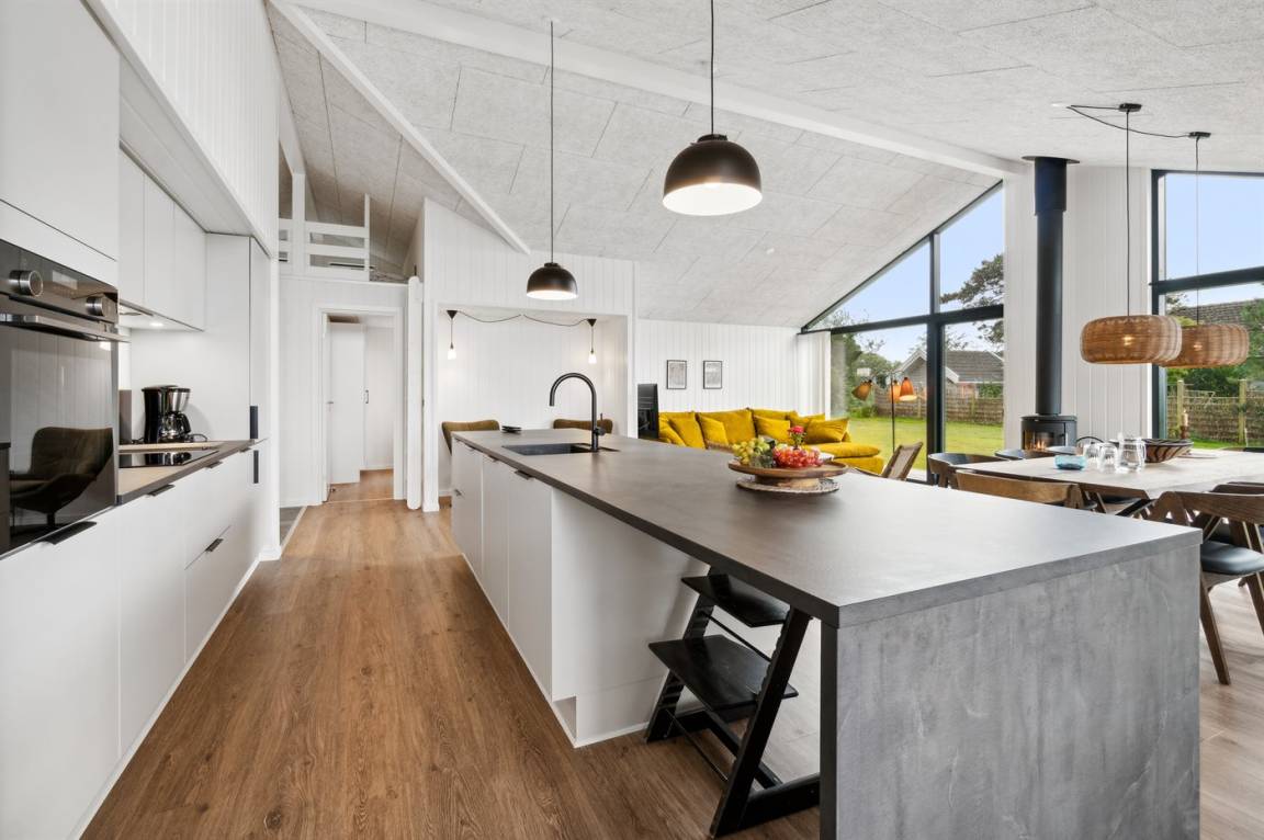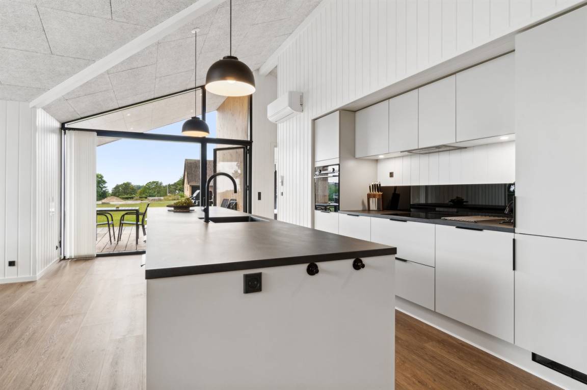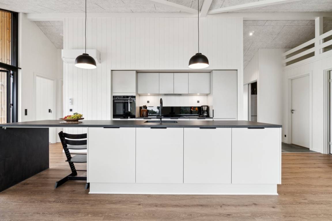 Das Haus ist modern eingerichtet, mit einem großen Wohnzimmer und einer funktionellen Küche, die geschmackvoll in die Einrichtung integriert ist. Die Möblierung ist von hochwertiger Qualität, und es wurde Wert darauf gelegt, dass du das dänische Hygge-Gefühl in der bequemen Sofaecke erleben kannst, wo es natürlich auch schöne Sessel gibt.