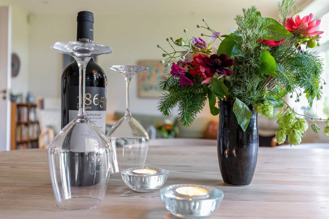KücheDie Küche ist mit Kühlschrank ausgestattet. Außerdem gibt es 4 Keramik-Kochfelder, Umluftofen, Mikrowelle sowie Geschirrspüler.