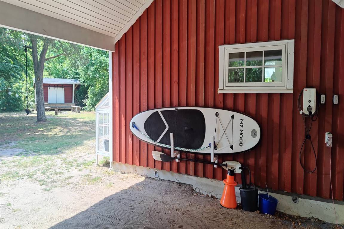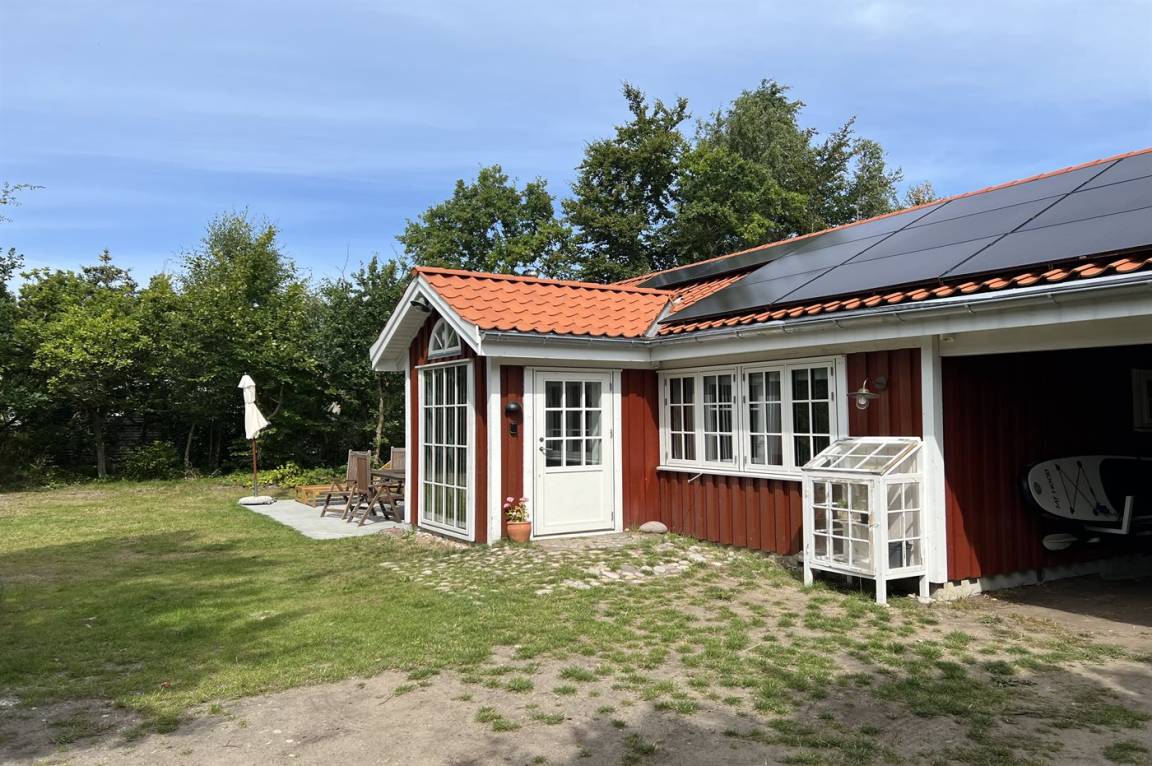 DraußenDie Ferienunterkunft liegt auf einem 1500 m² großen Naturgrundstück. Die Entfernung zum Meer beträgt 320 m. Die Entfernung zu einem See beträgt 1300 m. Die nächste Einkaufsmöglichkeit liegt 2600 m entfernt. In einem Abstand von 1500 m gibt es einen Golfplatz. Es steht ein offenes Terrassenareal zur Verfügung. Außerdem gibt es überdachte Terrasse. Geräteraum. Die Entfernung zu einem Spielplatz beträgt 4000 m.Lagerfeuerstelle. Windschutzhütte. Außensauna. Außendusche. Es beteht die Möglichkeit das Essen in der Außenküche zuzubereiten. Es steht ein Grill zur Verfügung. Es steht ein Carport zur Verfügung. Es ist ein Ladestecker für Elektroautos installiert. CEE Stecker. Parkplatz auf dem Grundstück.