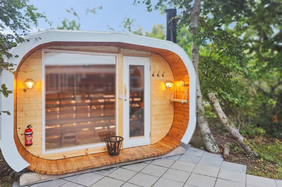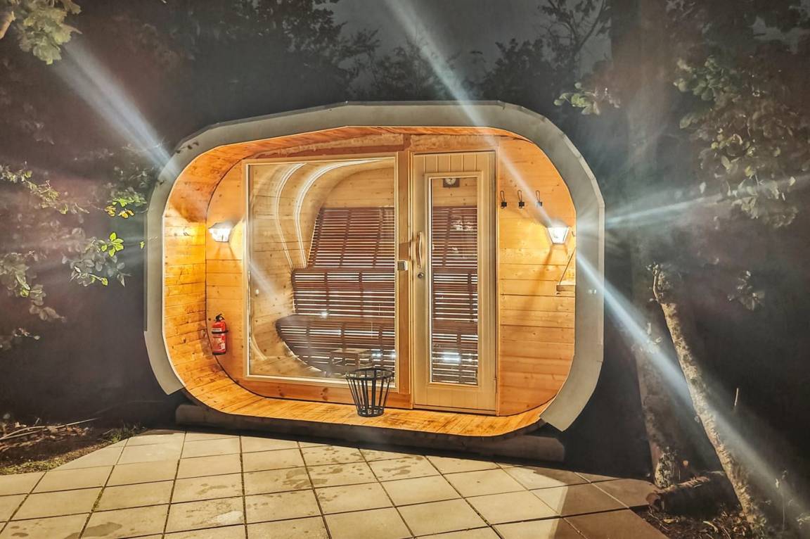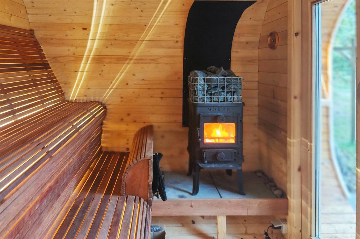 Das Ferienhaus bietet dir auch eine schöne Sauna mit Holzofen und einem großen Panoramafenster, durch das du in aller Ruhe den Blick in die Natur genießen kannst. Die Sauna ist direkt mit dem Ferienhaus verbunden und mit Lautsprechern ausgestattet, sodass du entspannende Musik hören kannst, während sich die Wärme ausbreitet. Es gibt auch Saunamützen, damit du das volle Wohlfühlerlebnis genießen kannst. Ein idealer Ort, um vollkommen abzuschalten – zu jeder Jahreszeit.