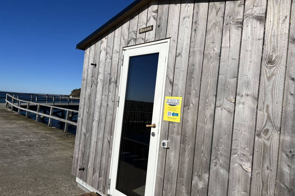 Das Ferienhaus liegt im kleinen Fischerdorf Arnager. Am Ende der langen Holzbrücke befindet sich ein kleiner Inselhafen. Dort wurde eine Sauna installiert, die von der Dorfgemeinschaft geschaffen wurde.