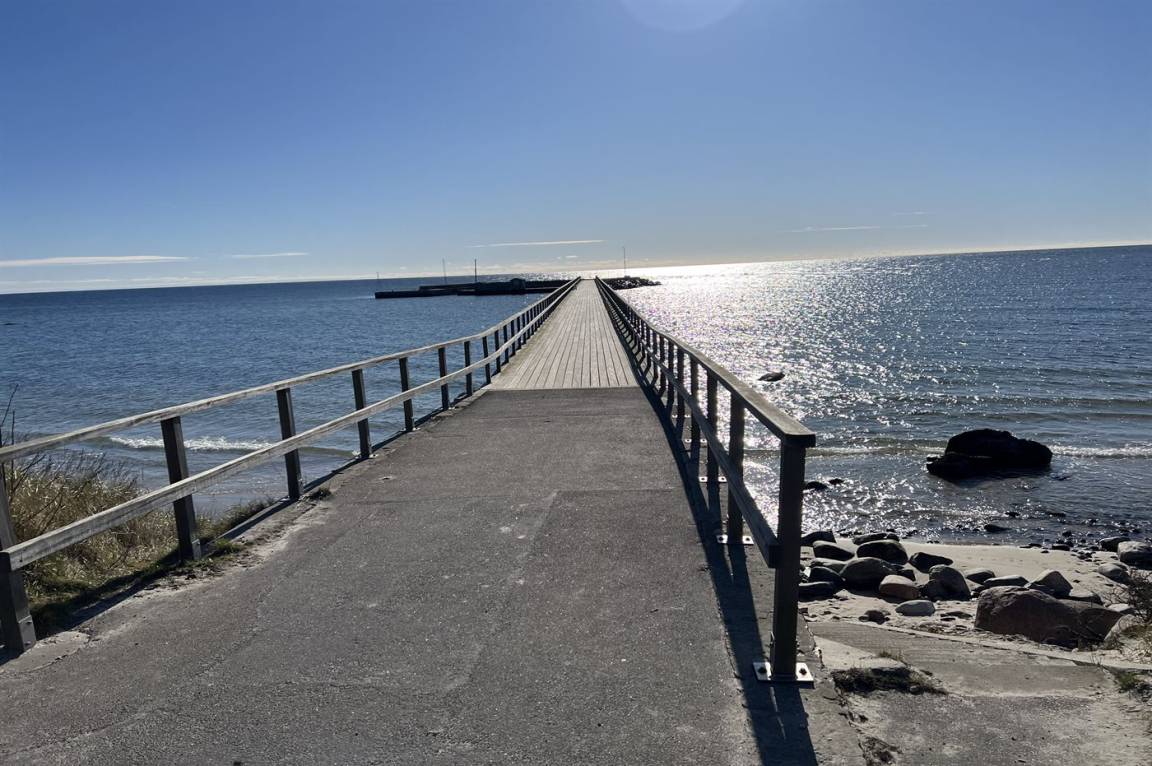 Die Küste bei Arnager hat stellenweise einen schmalen Sandstrand. Etwas weiter findest du jedoch einen nahezu ungestörten Sandstrand unterhalb der Klippe, die Schutz von der Landseite bietet – so kannst du das Meer, die Wellen und vielleicht sogar das Leben im kleinen Hafen aus der Ferne genießen.