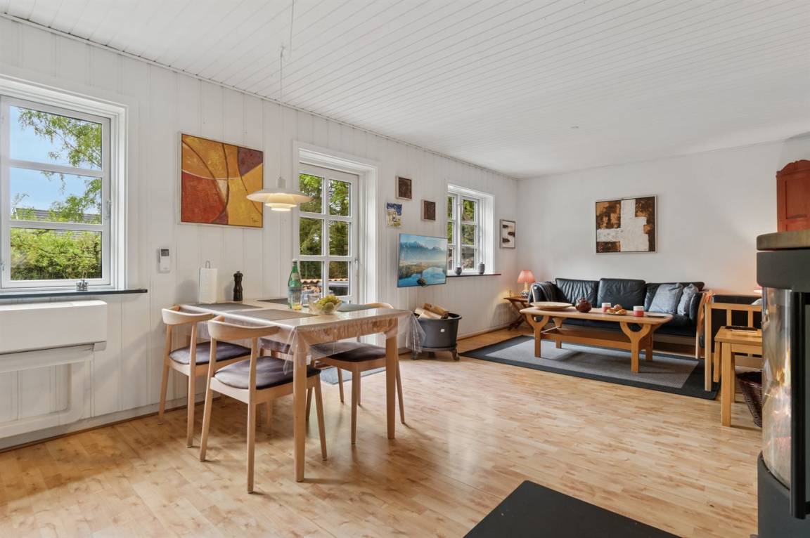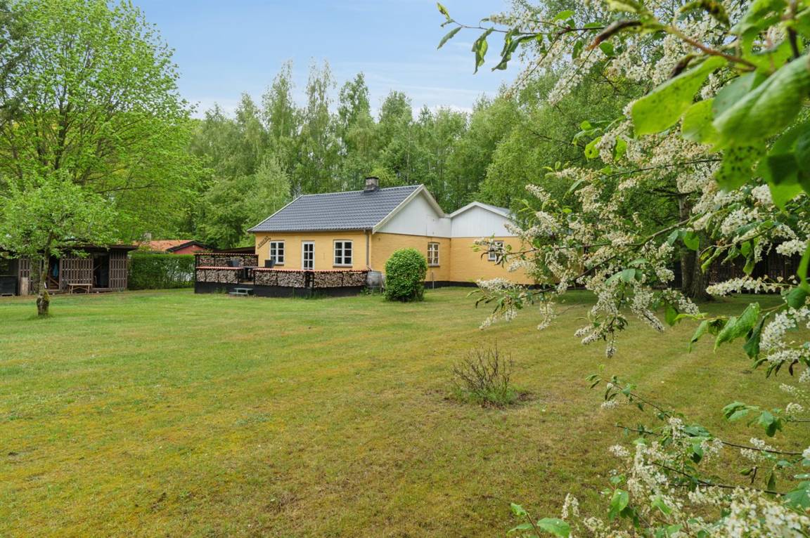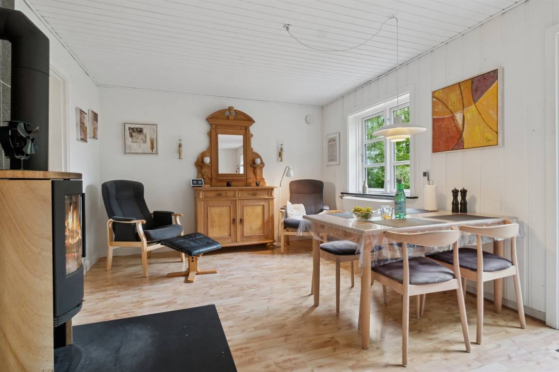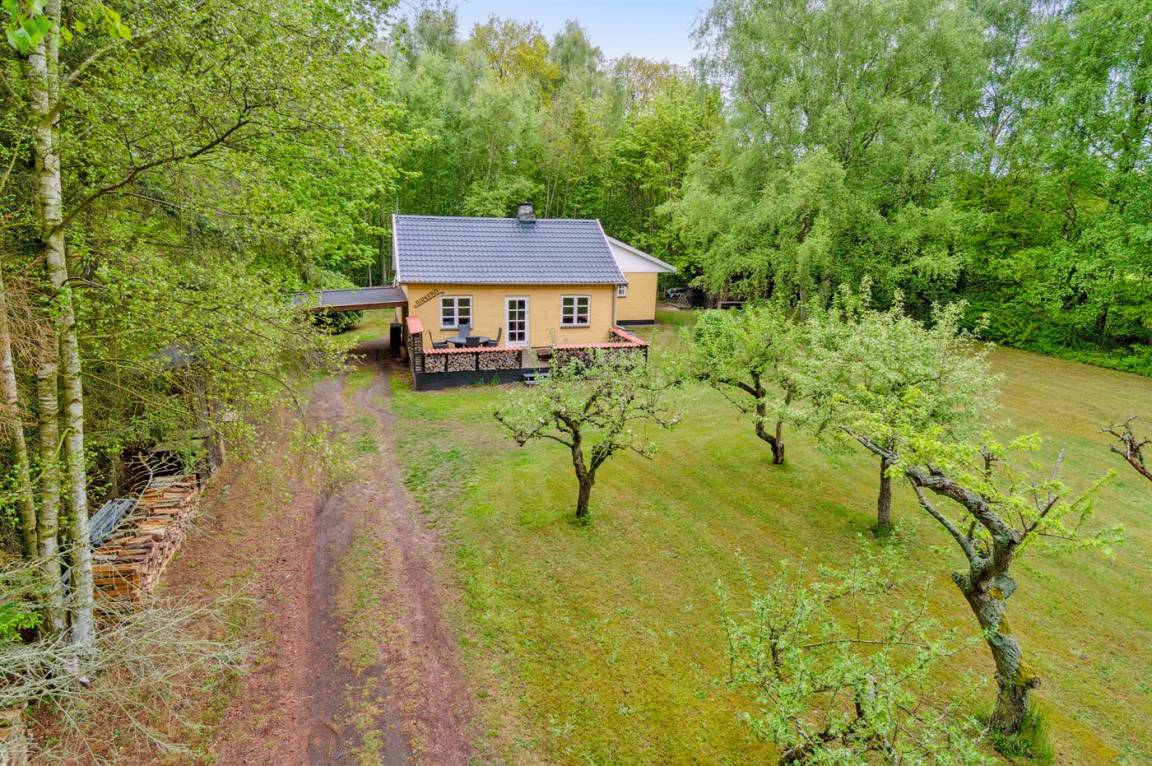 Absolut ruhige Lage, bei der ihr sofort spürt, wie nah ihr der Natur seid – in einem kleinen Ferienhausgebiet in ländlicher Umgebung. Das gepflegte und ganzjährig isolierte Ferienhaus liegt auf einem größeren Grundstück, das von Bäumen umgeben ist – abgeschirmt und mit nur wenigen Nachbarn.