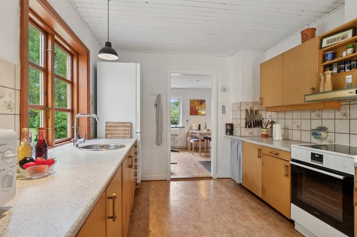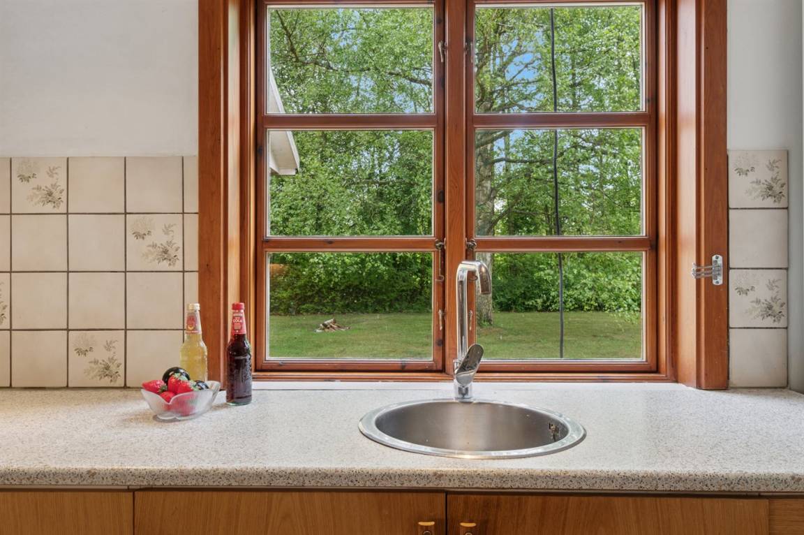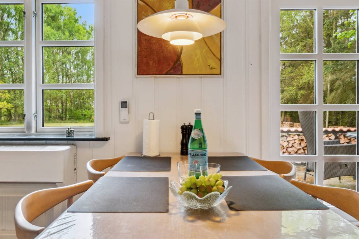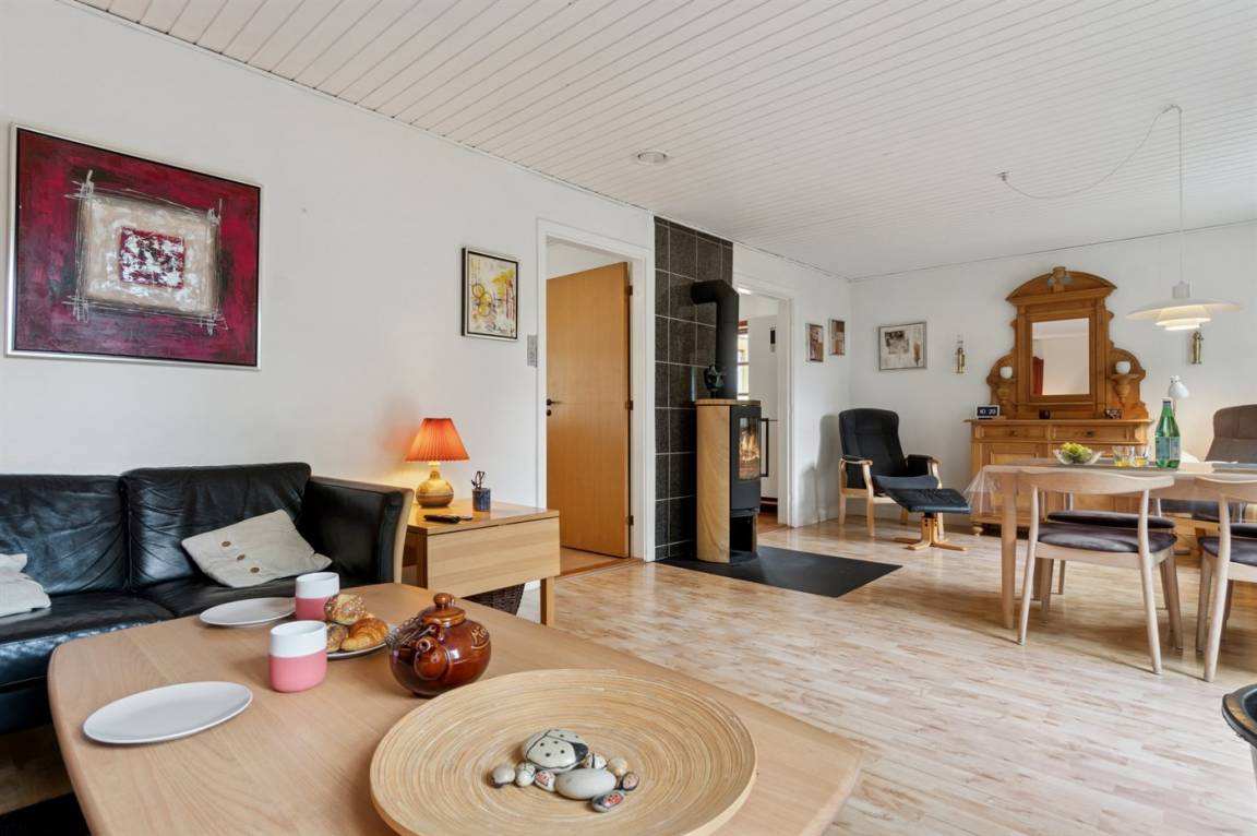 Absolut ruhige Lage, bei der ihr sofort spürt, wie nah ihr der Natur seid – in einem kleinen Ferienhausgebiet in ländlicher Umgebung. Das gepflegte und ganzjährig isolierte Ferienhaus liegt auf einem größeren Grundstück, das von Bäumen umgeben ist – abgeschirmt und mit nur wenigen Nachbarn.