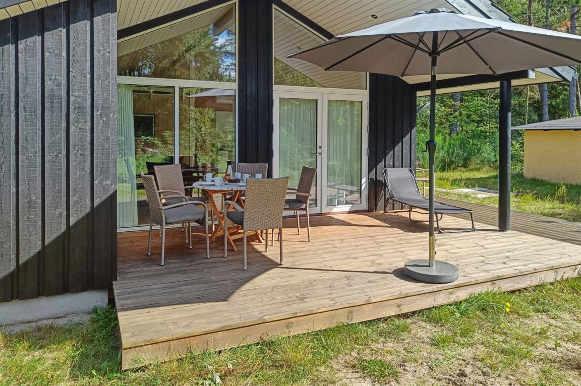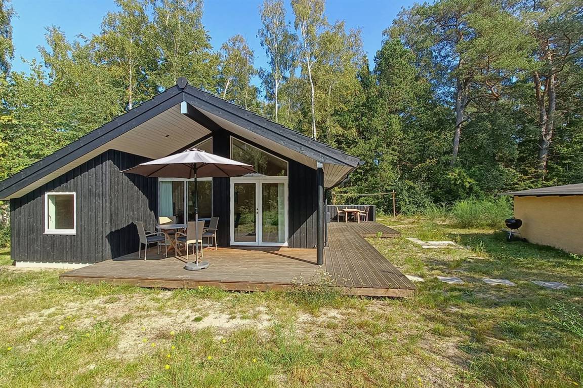 Tolles neues Ferienhaus von 2020 in einer friedlichen Gegend des Ferienhausgebiets Stampen, ganz in der Nähe von Rønne und einem wunderschönen Sandstrand gelegen. Das Haus verfügt über schöne und gut geschützte Terrassenbereiche.