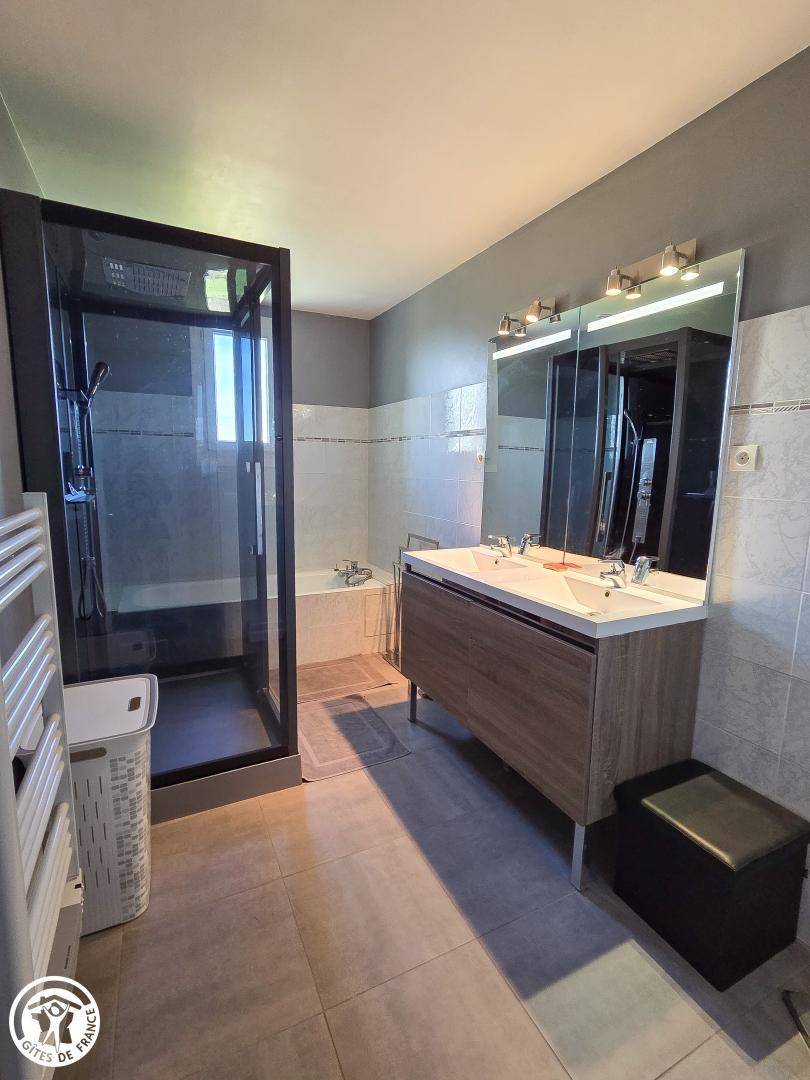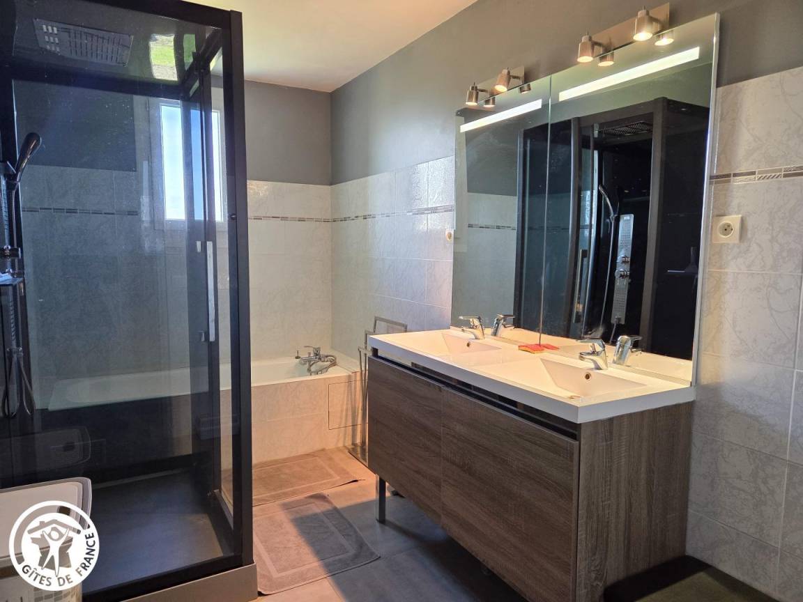 „Séjour très agréable dans cette maison tout confort et cet environnement verdoyant, calme et ressourçant. Un grand jardin bien clôturé pour notre chien avec une vue magnifique.“