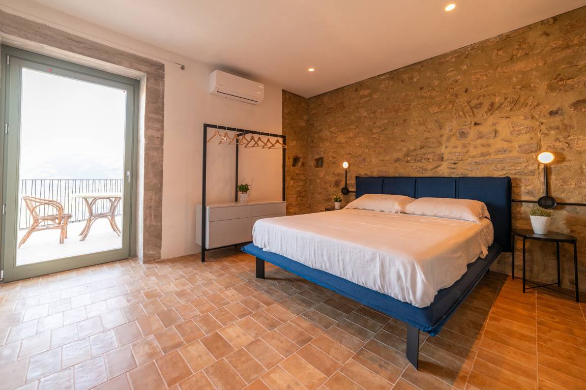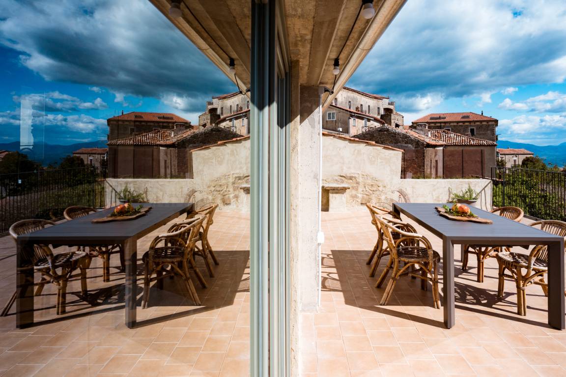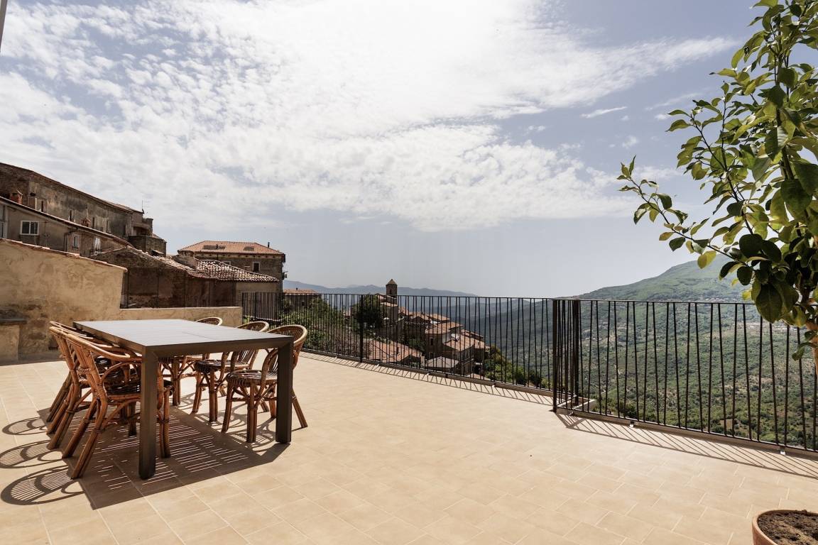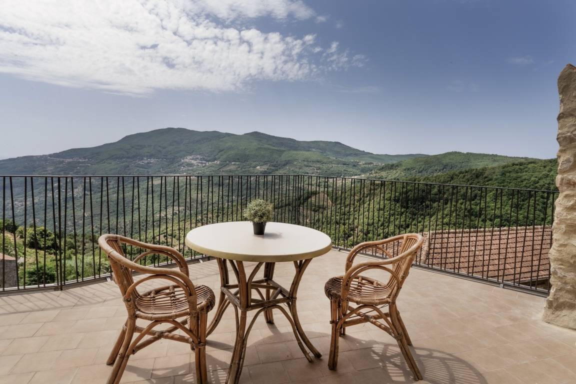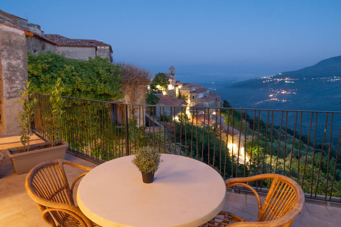 From the attic floor, you have got access of a ca. 40 m², furnished terrace, which opens upon a view of the lower part of Rocca Cilento and, behind Casa La Rocca, of the castle located on a rise. In the distance, you can see the Cape of Palinuro and the sea. The castle is an approximately 5-min. walk from the accommodation.