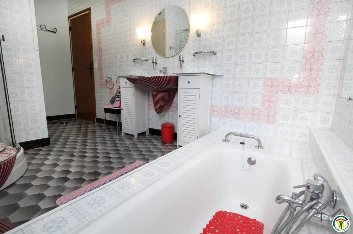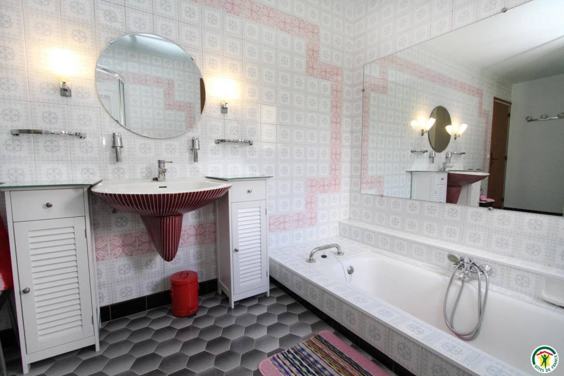 Die traditionelle Architektur dieses Hauses in Kombination mit dem modernen Komfort seiner Inneneinrichtung verleiht ihm einen ganz besonderen Charme. Getreu dem Stil der 1960er Jahre, seinem Baujahr, ist dieses Ferienhaus für 6 Personen der ideale Rückzugsort für alle, die einen ruhigen Urlaub und die Freuden eines privaten Swimmingpools genießen möchten. Es liegt im Obergeschoss eines Hauses, zu dem auch eine weitere, im Sommer ungenutzte Wohnung gehört (ebenfalls vom Erdgeschoss aus zugänglich) und verfügt über einen separaten Eingang: Küche, Wohnzimmer, Aufenthaltsraum, 3 Schlafzimmer (140x190) (140x190) (2x90x190), Bad/WC (Dusche und Badewanne), Duschraum (ebenerdige Dusche und Waschbecken), separates WC. Terrasse mit Grill (Holzkohle vorhanden). Privater Swimmingpool (4x8,50 m). Klimatisiertes Esszimmer und Fernsehraum. Schattiger Parkplatz.