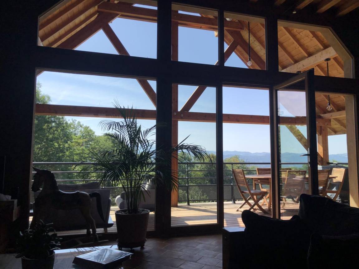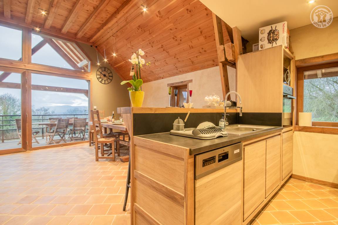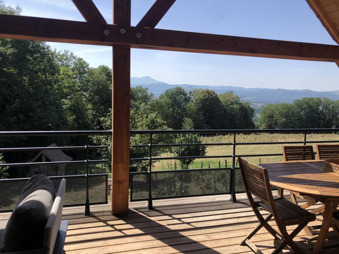 „Nous avons passé de superbes vacances. Le logement est décoré avec goût aliant bois et modernité, il dispose de tout le matériel (lave vaisselle, lave linge, entrée indépendante et petit hall) et les produits du quotidien (produits d'entretien, papier WC, épicerie...). La vue et la terrasse sont un vrai plus. En pleine nature, avec les animaux (poney, moutons, vaches, chiens, poules, canards et oies), il permet la déconnexion avec le quotidien. La propriétaire est discrète, disponible et attentionnée (fruits et légumes du jardin). Un grand merci pour votre accueil. C'est un très beau logement de vacances. La région offre de belles visites (domaine des fauves à 20 minutes, grottes de saint Christophe à 40 minutes, ville de Chanaz à 40 minutes...), des baignades (à 30 minutes piscine biologique des échelles avec vue sur les montagnes, notre coup de cœur, lac des Aiguebelette à 20min, lac du Bourget à 40min, lac de Romagnieu à 20min). Vous êtes situés entre les montagnes de la Savoie et le département de l'Ain avec le Rhône. Vous avez à 10 minutes la fromagerie de d'Avressieux et à 20 minutes, celle de l'Ayn (petit coup de cœur).Il faut prévoir un parasol pour les baignades, sauf au lac de Romagnieu. Les baignades sont payantes et surveillées. En résumé, une belle région à visiter et un logement propre, fonctionnelle, confortable (literies et canapés de qualité) et esthétique !“