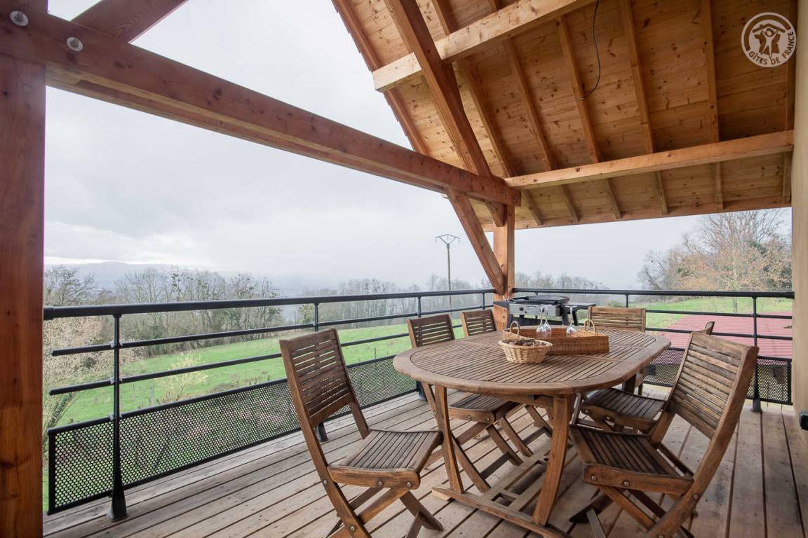 „We were vry delighted with this gite and it's owners. They know what welcoming means!welcoming flowers, eggs, botlle of wine, a "tomme".... Superb! De gite was clean, crisp sheets and blankets on each bed. A clean bathroom, with a rainshower. One in our party is disabled and is walking with a walker, wich is no problem at all. Good equipment in the kitchen and a very fine baking tray on the balcony. And last but not least the beautiful vieuws through the large windows and from the balcony! A fat 10+!“