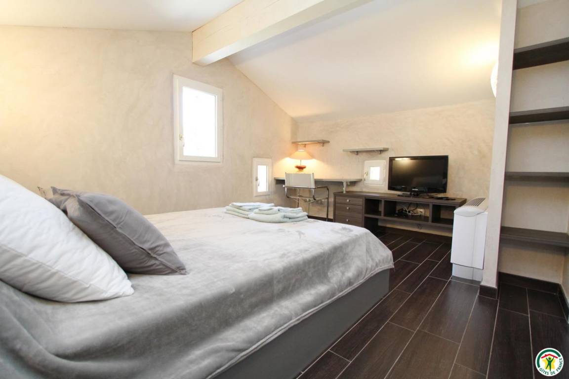 Im Erdgeschoss: moderne Küche, komplett ausgestattet und angenehm zum Wohnen dank eines Glasdachs, das Wärme und Licht spendet und einen Blick auf den Swimmingpool und die überdachte Terrasse bietet. Wohnzimmer mit Sitzecke, Badezimmer mit WC. Obergeschoss: 2 klimatisierte Schlafzimmer (160x200) (160x200), davon 1 mit eigenem Bad, separates WC. Handtücher und Handtücher werden gestellt. Zu Ihrer Verfügung: Multisportplatz, Kegelbahn, beheiztes Schwimmbad zur Mitbenutzung mit den Eigentümern (5x8m).