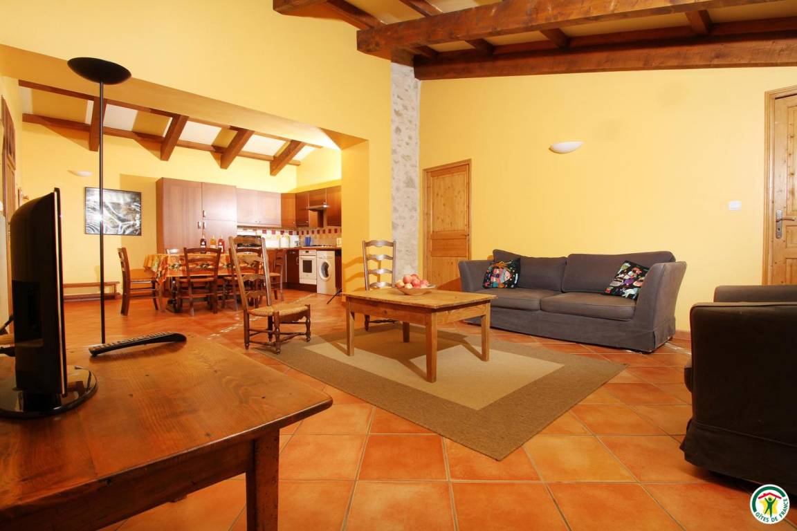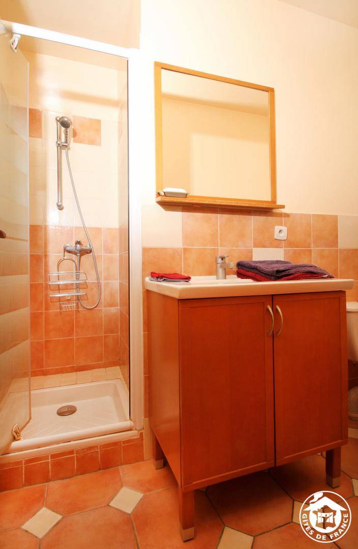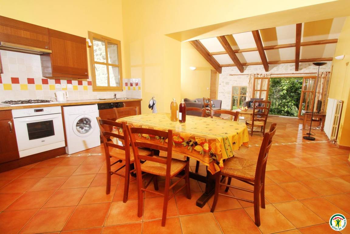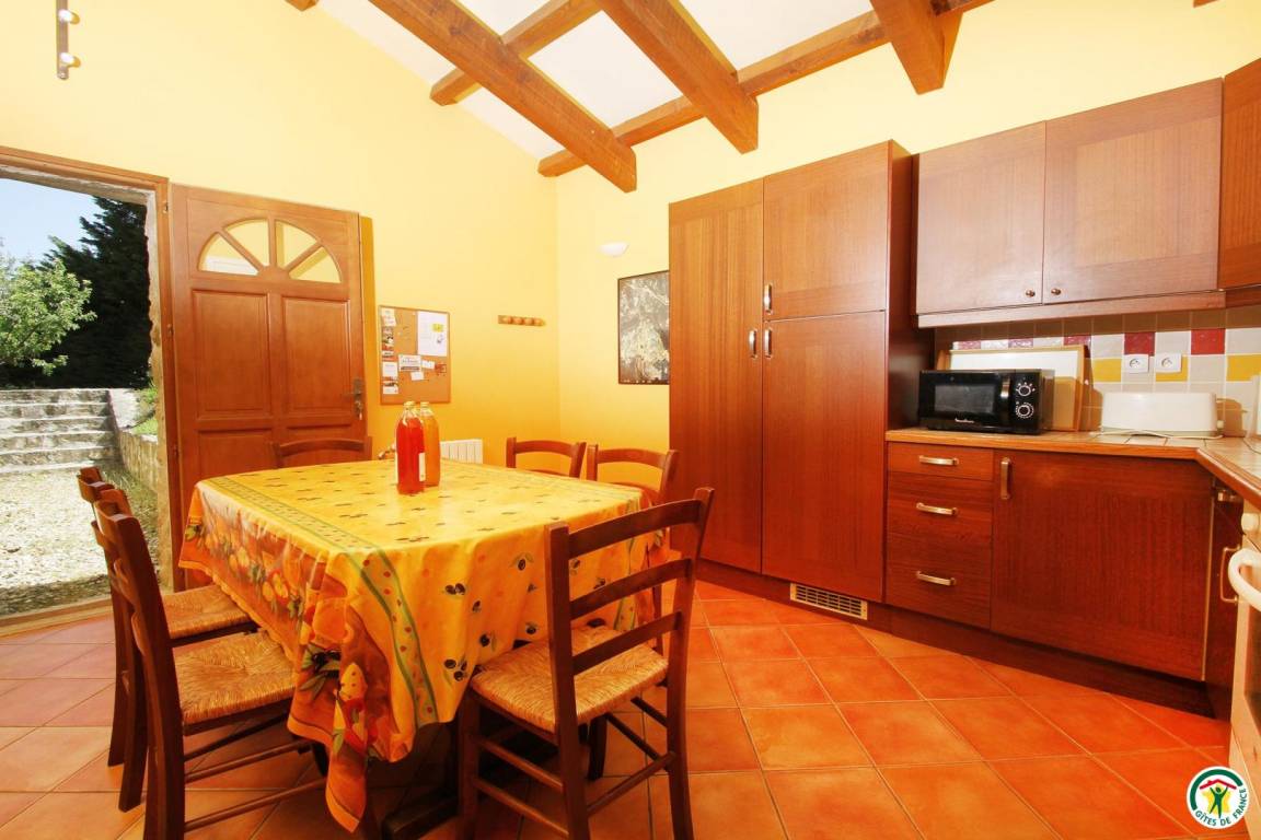 Küchenzeile im Wohnraum, 3 Schlafzimmer (1 Bett 140 cm) (2 Betten 90 cm) (2 Betten 90 cm, darunter eines über eine für Kinder ab 6 Jahren geeignete Leiter zugänglich), 2 Bäder mit Dusche. Bettwäsche und Handtücher inklusive. Der Swimmingpool wird gemeinschaftlich mit den Vermietern genutzt, 7 x 11 m, von Mitte Juni bis Mitte September geöffnet.