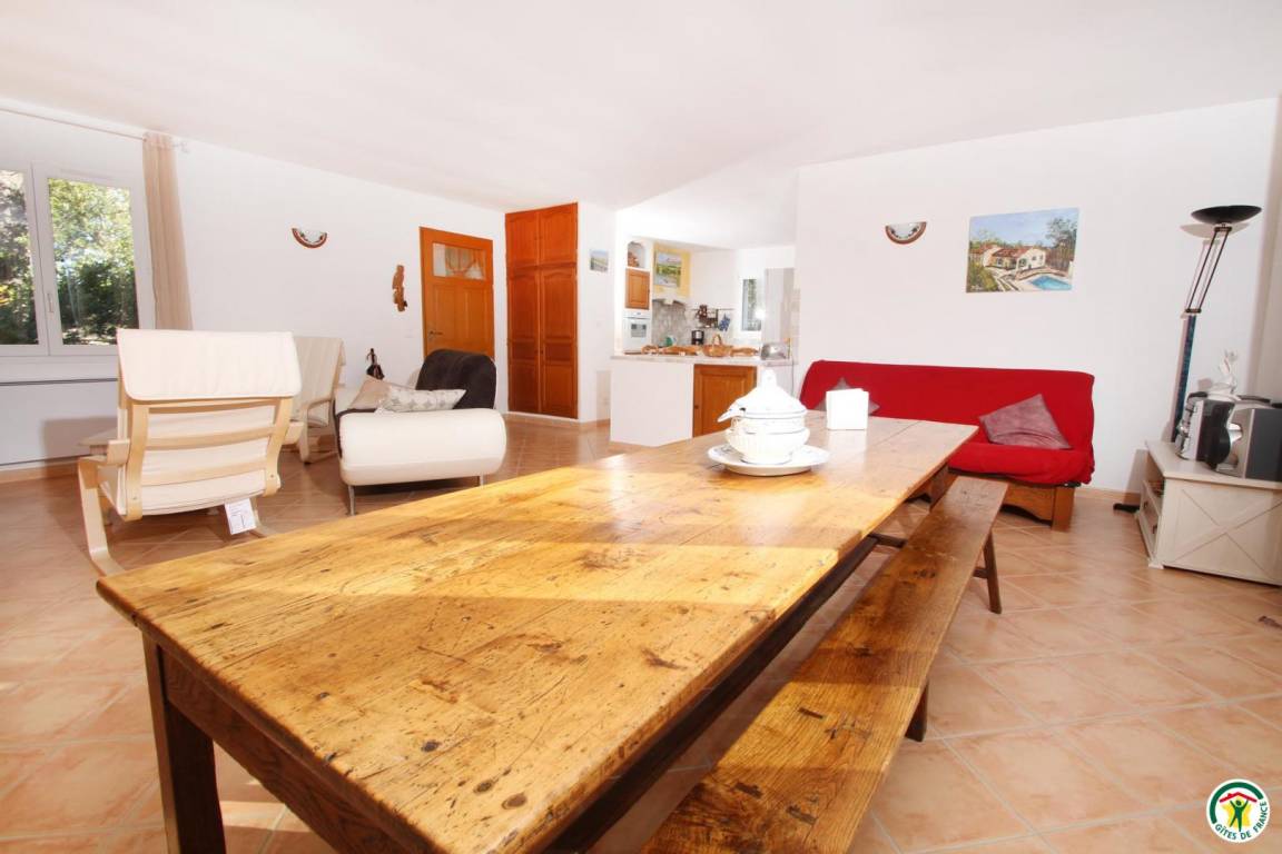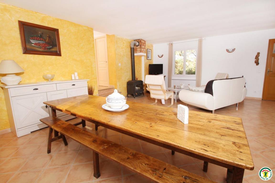 In diesem frei stehenden Landsitz verbringen Sie Ihren Aufenthalt inmitten von hundertjährigen Kiefern und Eichen. Oberhalb des Dorfes in der Nähe des Hauses der Vermieter, jedoch ohne Gegenüber und über ein paar Stufen zugänglich: Küche, Wohnzimmer mit Sitzecke und Holzofen, Waschküche, 3 Schlafzimmer, darunter 2 Suiten mit eigenem Bad mit Dusche (1 Bett 140 cm) (1 Bett 140 cm) (2 Betten 90 cm), Badezimmer, separates WC. Überdachte Terrasse und Carport.