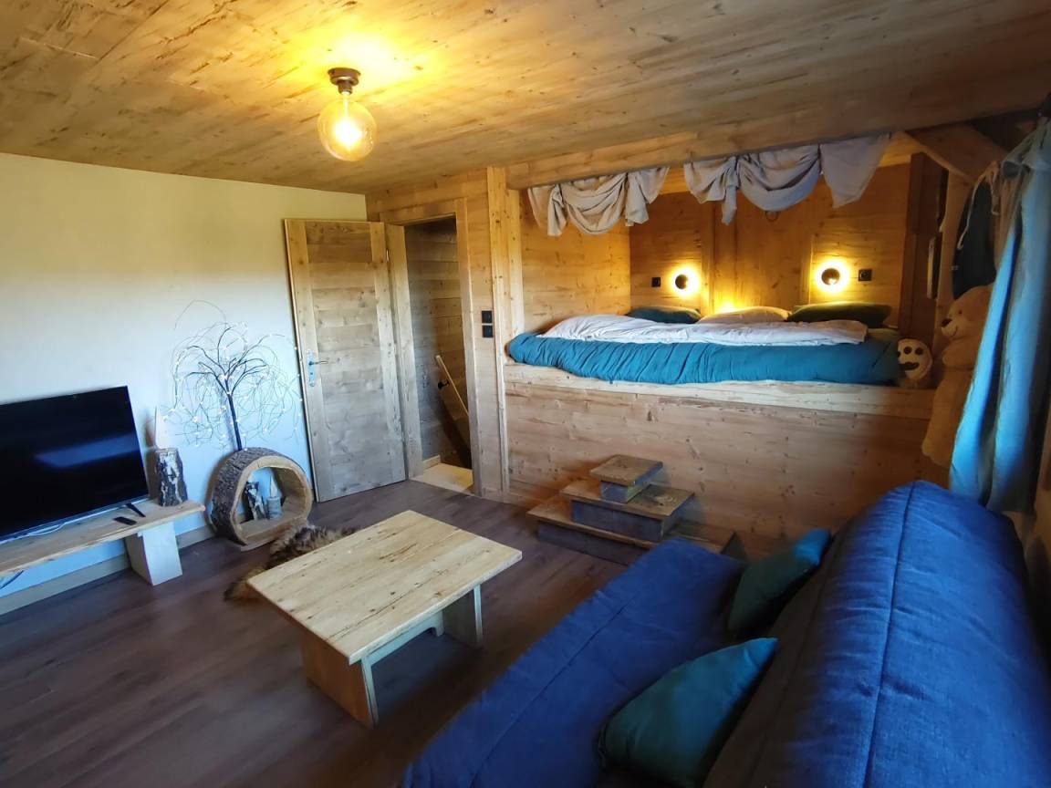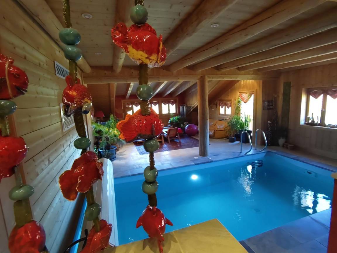 „Cadre, accueil, équipement (piscine intérieure au top!): Tout est parfait dans cette ferme rénovée en gardant l’atmosphère des chalets d'alpage... même les escaliers sont remarquables...Setting, welcome, facilities (top-notch indoor pool!): Everything is perfect in this renovated farmhouse, retaining the atmosphere of the mountain chalets... even the (steep) stairs are remarkable...“