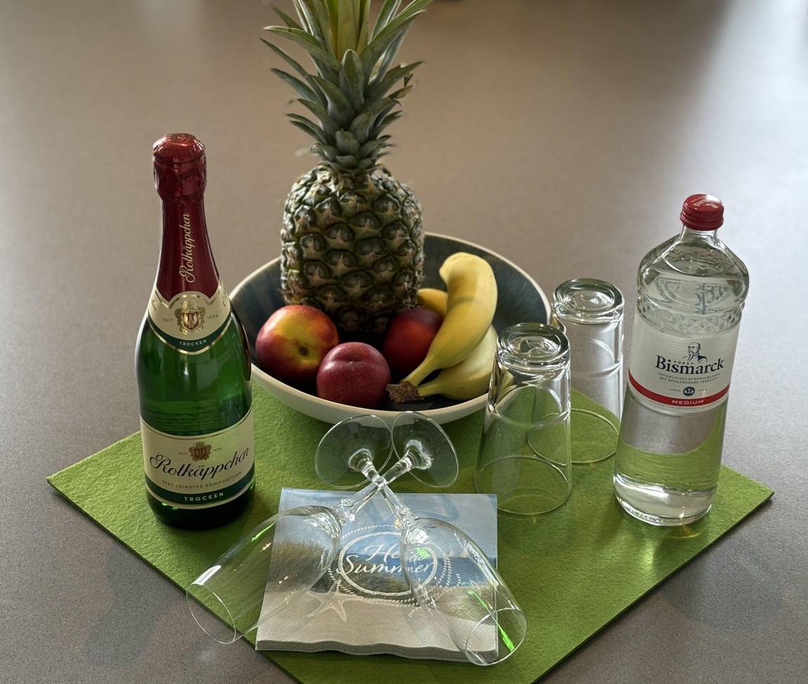 Als Willkommensgruß warten bei Anreise Sekt und Wasser auf Sie.