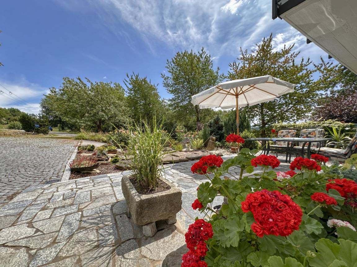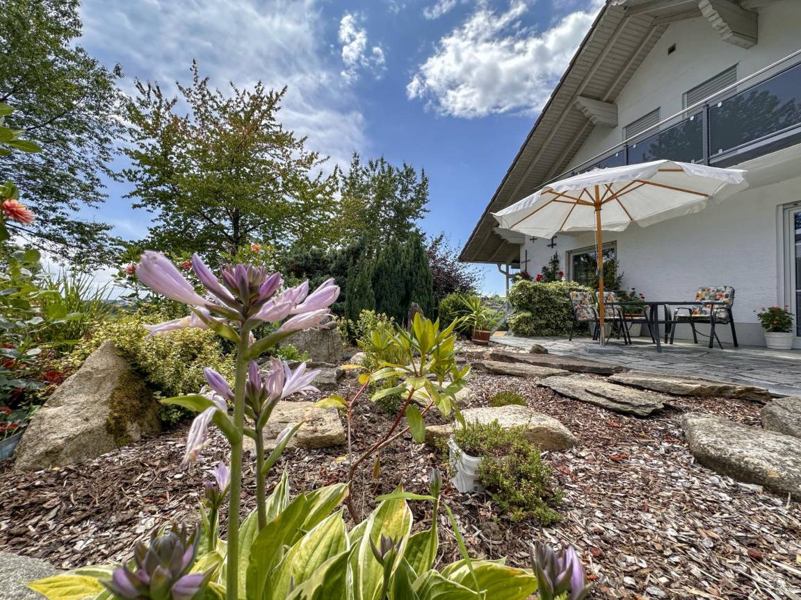Hausbeschreibung : Diese ansprechende Ferienwohnung im Erdgeschoss befindet sich im idyllischen Ort Goggersreut, inmitten des Bayerischen Waldes und nur etwa 20 Autominuten von Passau entfernt. Die ruhige, aber zentrale Lage macht sie zum idealen Ausgangspunkt für Ausflüge in die Natur und kulturelle Erkundungen in der Dreiflüssestadt. Eine eigene Terrasse, ein überdachter Balkon und der gemeinschaftliche Garten runden das Angebot dieser hellen und freundlichen Wohnung ab