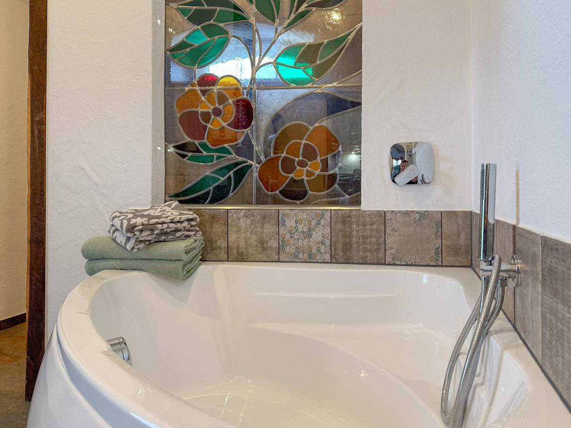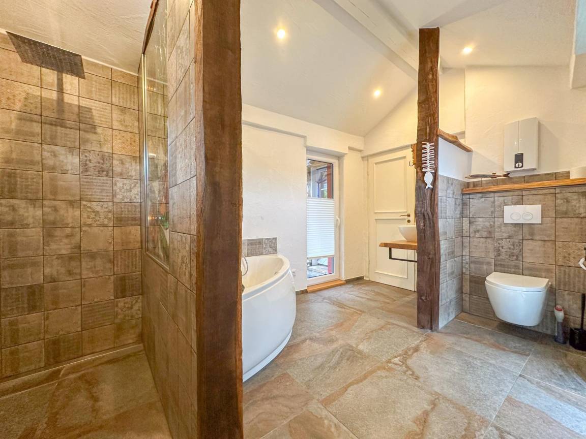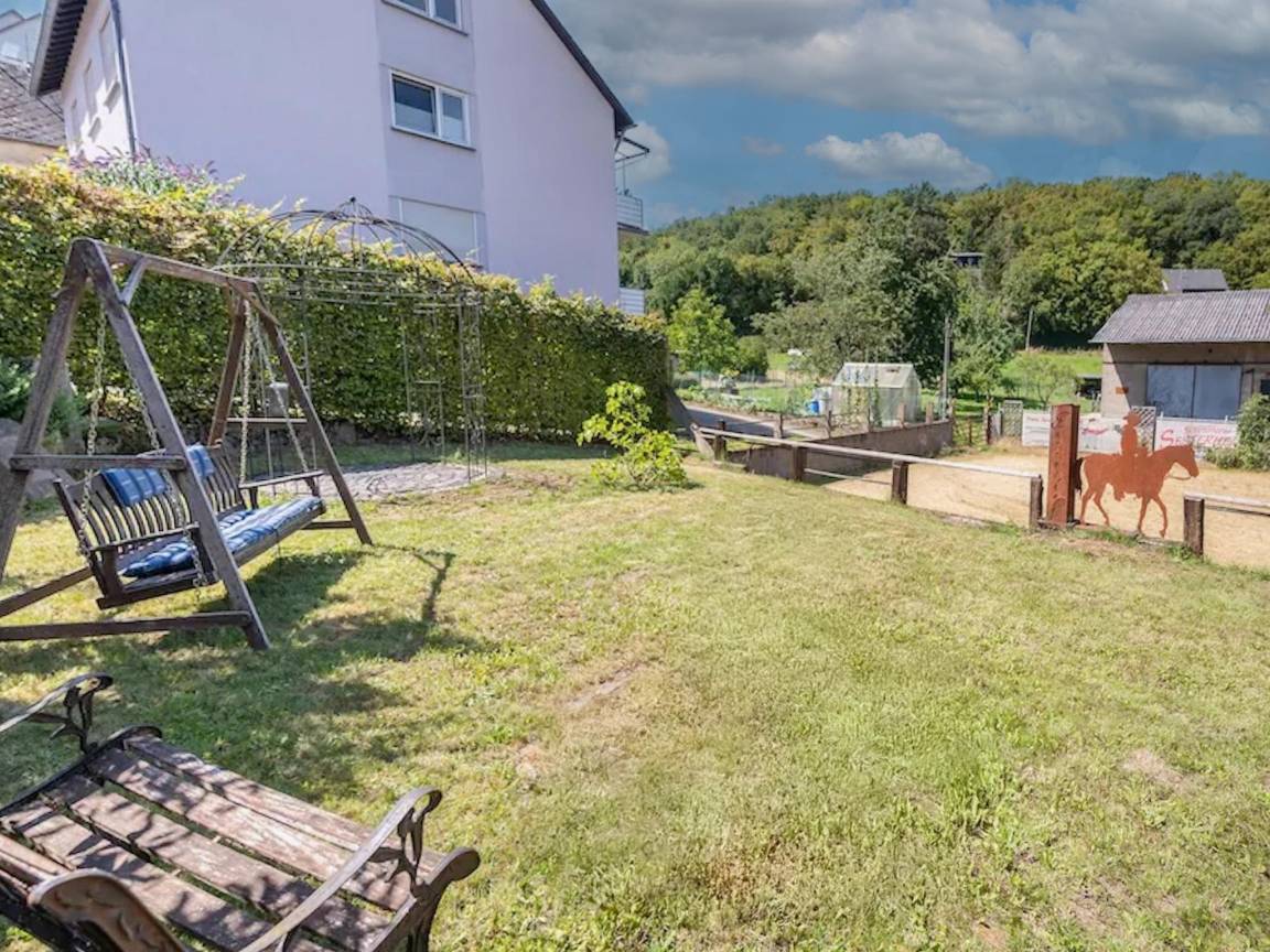 Hausbeschreibung : In dieser stimmungsvollen Wohnung mit vielen einzigartigen Details werden Sie sich wie zuhause fühlen. Mit Badewanne, Regendusche, kompletter Küche und einem geräumigen Wohnzimmer mit Flachbildfernseher fehlt es nicht an Luxus. Die Wohnung befindet sich in einem alten Bauernhof, den Sie alleine bewohnen, Ruhe garantiert. Bei gutem Wetter können Sie im geschützten Innenhof oder im Garten, mit Blick auf die Pferde, hinten im Hof sitzen. Die zentrale Lage in der Eifel macht sie ideal für Ausflüge